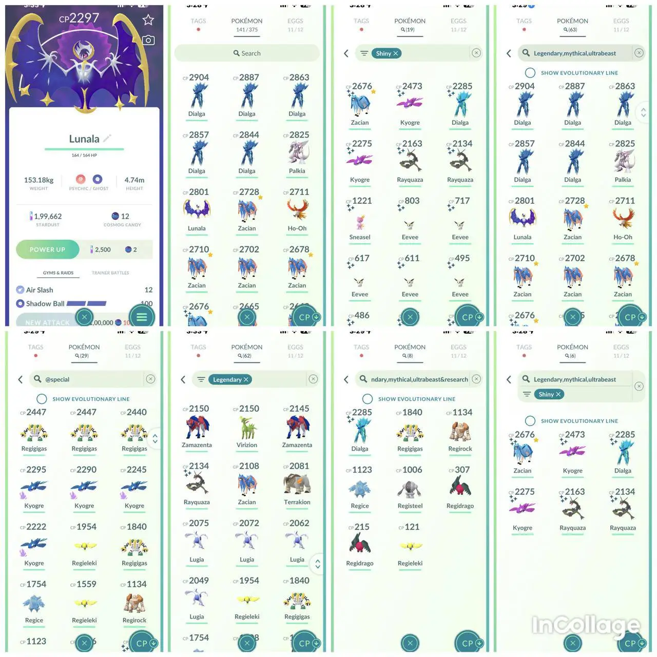 ✨ SHINY RAYQUAZA ✨ SHINY KYOGRE 💪🏻 SHINY ZACIAN✨SPECIAL BACKGROUND ZACIAN 🔥 SPECIAL BACKGROUND REGIDRAGO 🎀 SHINY DIALGA 🐉🔥 LEGENDARY LUNALA ✨34 ACCOUNT ⚜️ 62 LEGENDARY 🐉 19 SHINIES ✨