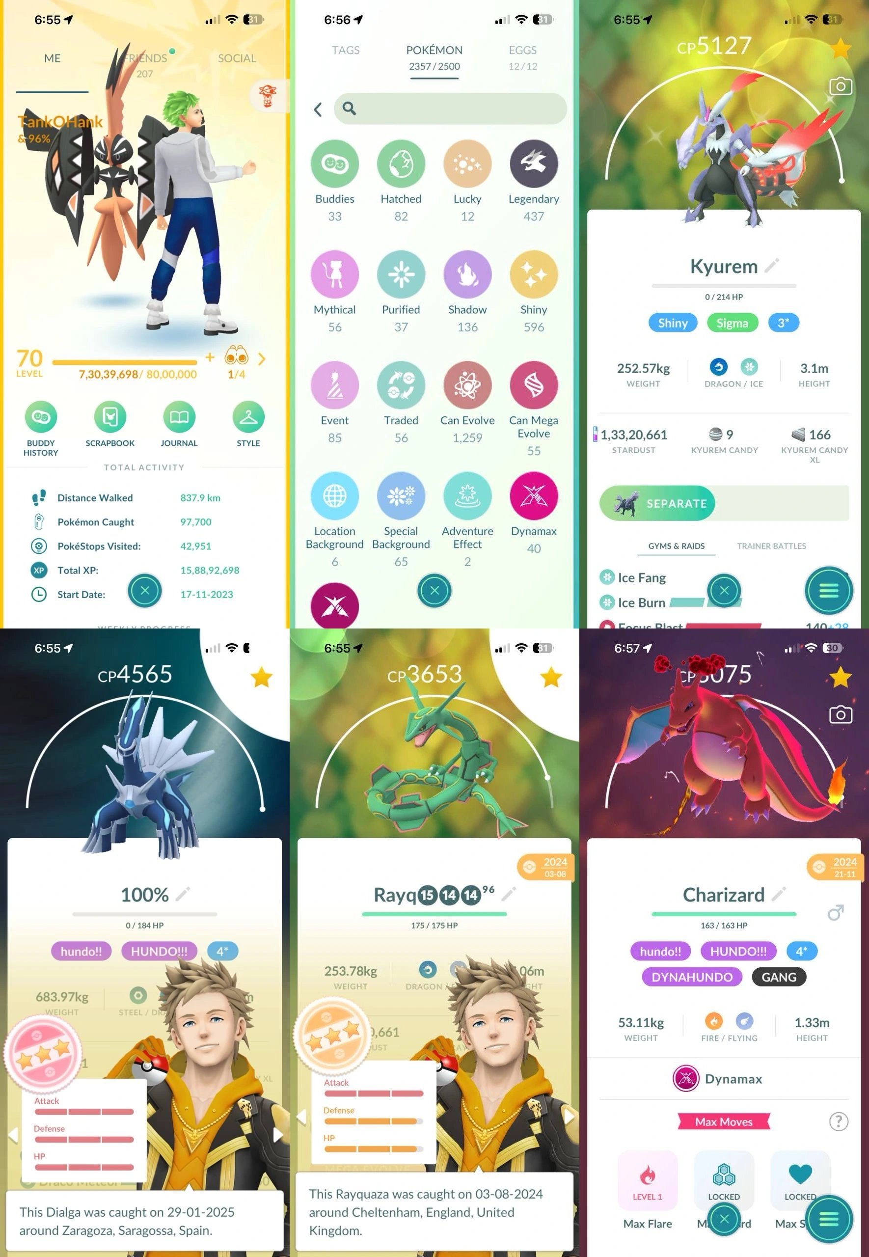 STACKED (LVL70)ACC⭐ ✨437 LEGENDARY👑596 SHINY🌟80+ HUNDOS💎SHINY KYUREM CP5127🔥HUNDO DIALGA & HUNDO DMAX CHARIZARD⚡SHUNDO PIKACHU🎭136 SHADOW💀2× MASTER BALLS🎯96iv RAYQUAZA READY🚀13M+ STARDUST