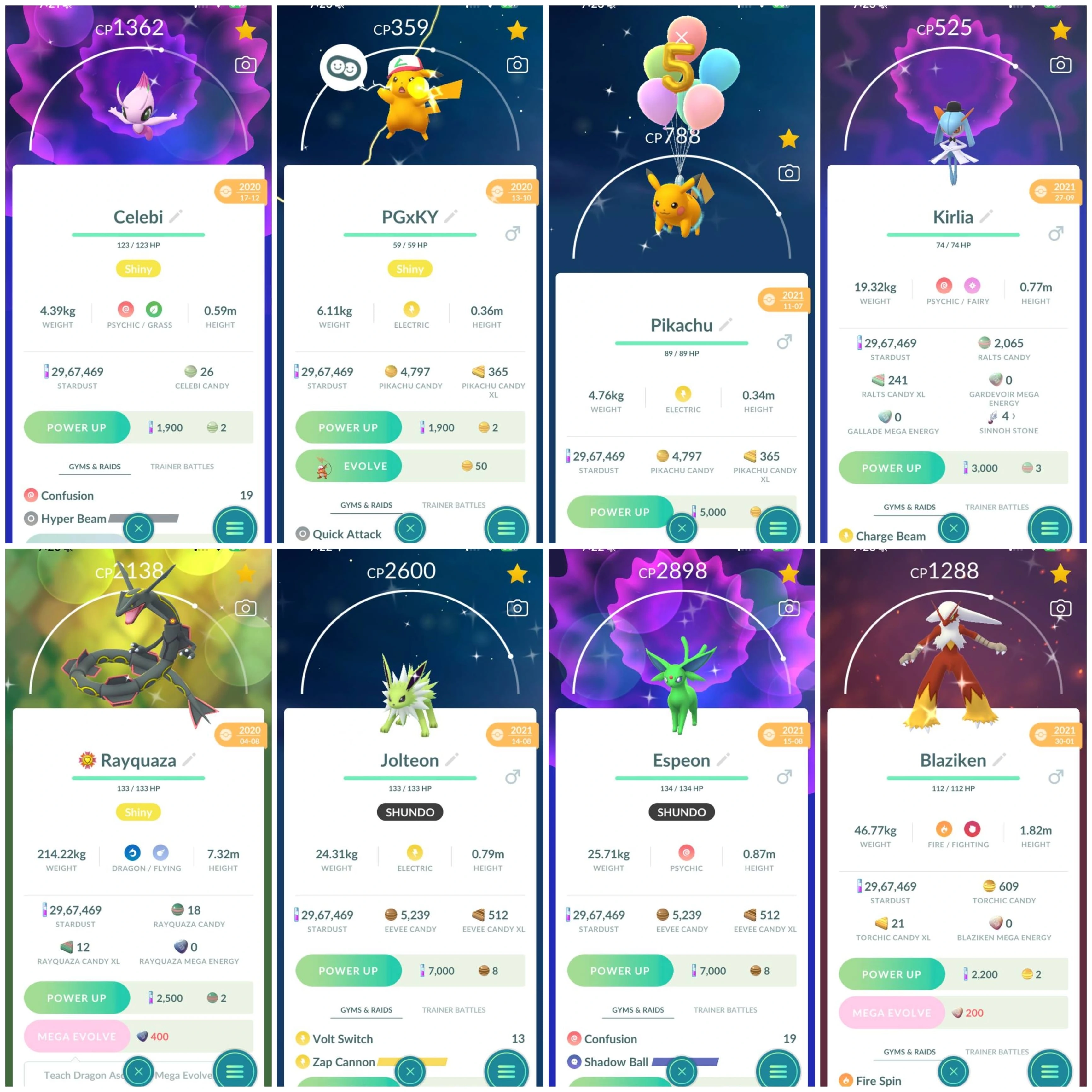 🚨ULTRA FLEX(LVL48)(2018)⭐305 LEGENDS✨1160 SHINY(24 SL’s)👑 ASH HAT PIKACHU(TRADABLE)⚡️HUNDO MAXED GARCHOMP CP4479+SHUNDO JOLTEON&ESPEON🌟174 HUNDOS🤩2xSHINY MEWTWO+SHINY CELEBI+RAYQUAZA🔥EVENT PIKACHU🎭2.9M+STARDUST