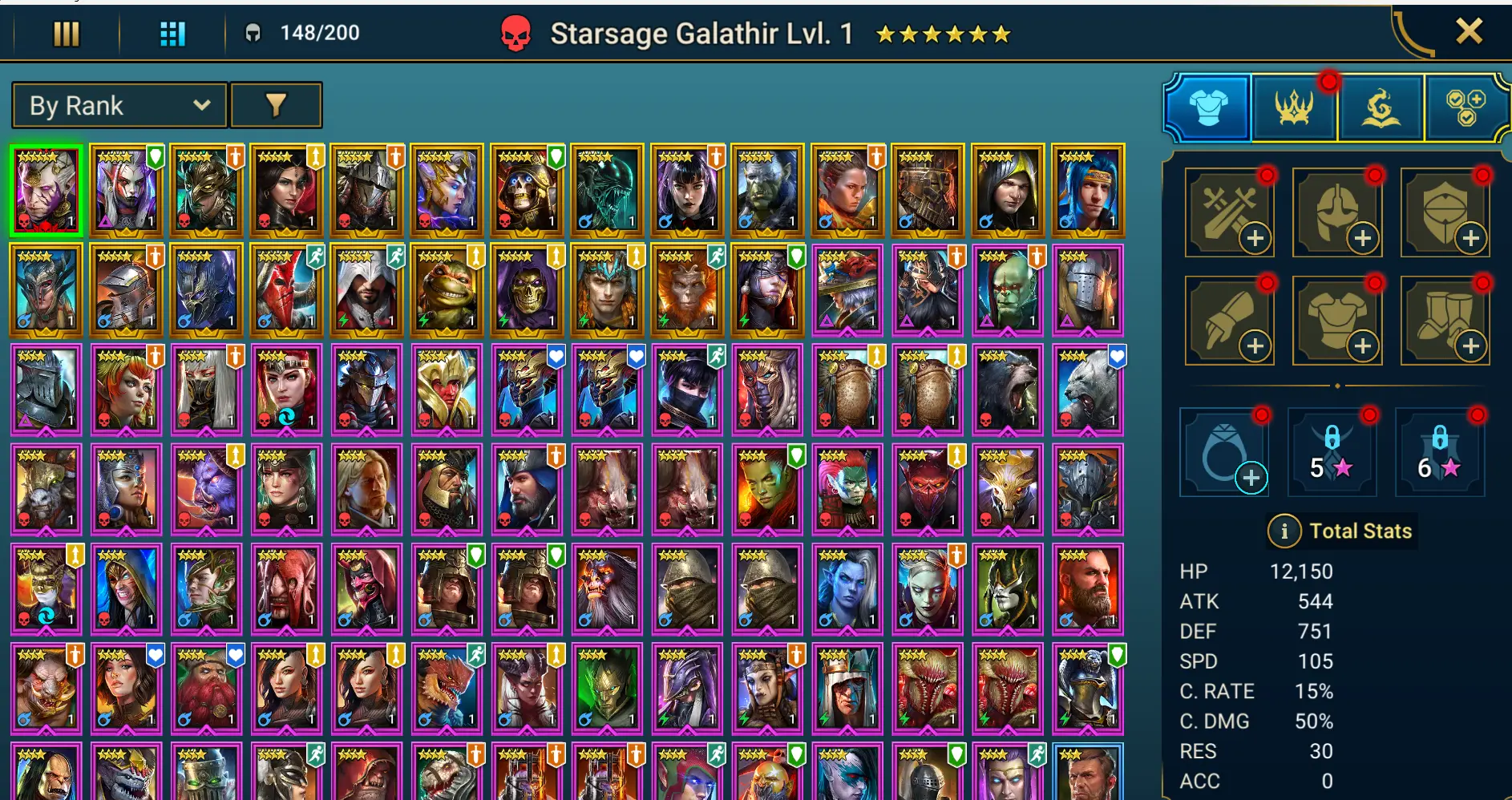 62k Energy 🌺 [Mythical Starter] Starsage Galathir 🎯 Kyoku 🎖️ Cillian ✨ Foli 🎱 Grohak 🌺 Goffred 🌺 18 Free Legends 🌺 3 Sacred Shards 💫 13,2k Gems
