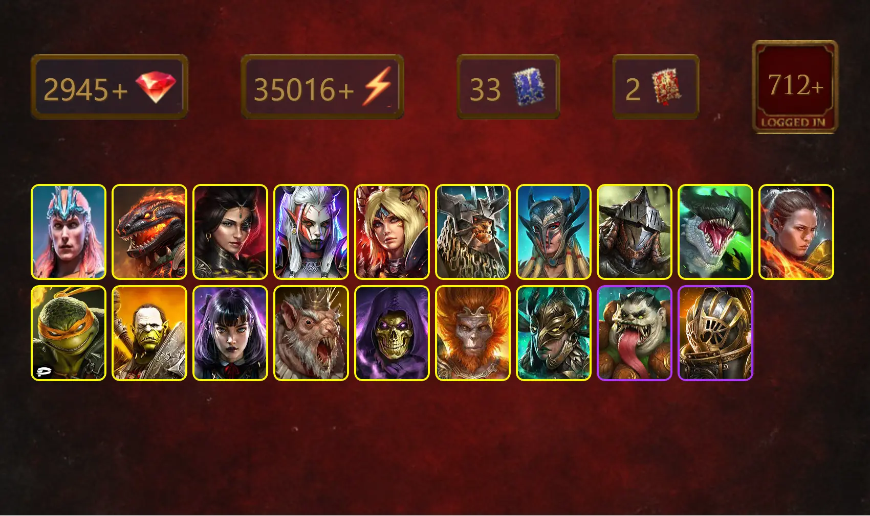 [STARTER]Sulfuryion+Gnishak+Loki+Adelyn+Visix+Zinogre Blademaster+Iron Brago+Scyl+Rathalos+Fu-Shan+Ronda+Michelangelo+31Epics