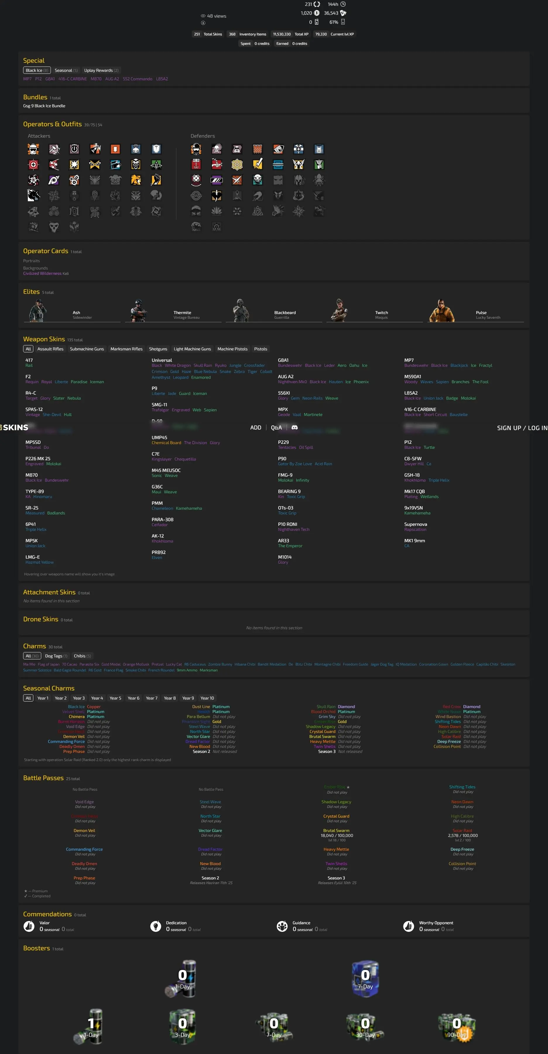PC [ Level 231 ] 2x Diamond / 6x Platinum 8 Black Ice / 5 Seasonal / 5 Elite ⚡ 37 Operators 36543 Renown ✅ Full Access