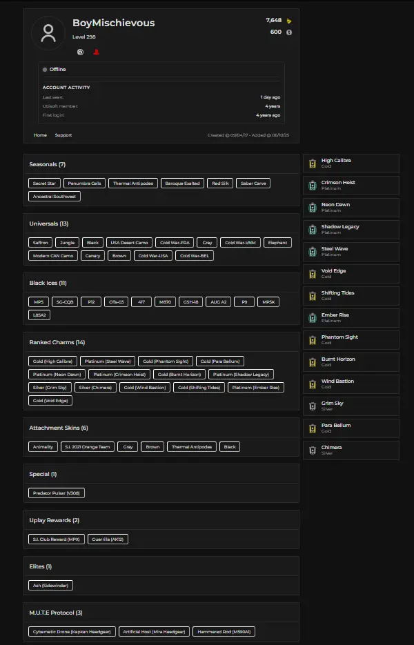 🎮 PC/PSN CROSS-PLATFORM | LEVEL 298 | 7.6K RENOWN | 11 BLACK ICE | 14 LEGENDARY | 64 EPIC | 4-YEAR VETERAN ACCOUNT