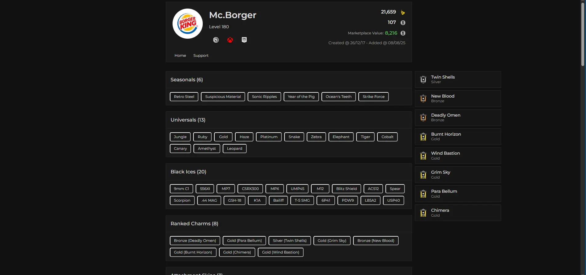 🔥【PC/PSN】🎭189 Skins ❄️20 Black Ice 🗓️6 Seasonals 🌌13 Universals 👑2 Elites ⚔️Ranked Ready 🚀Lvl 180