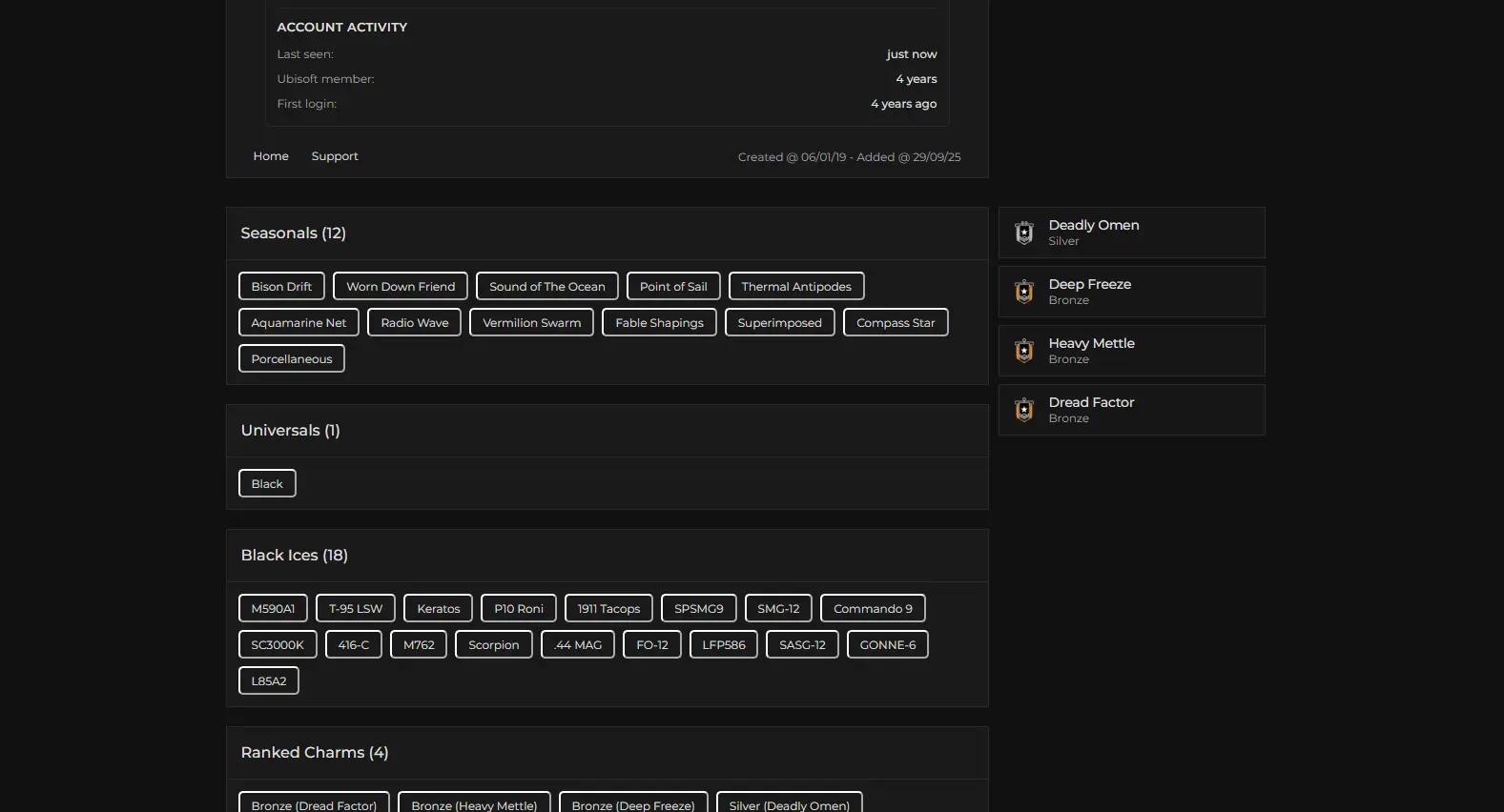 【PC/XBOX】 🎨 137 Skins 🧊 18 Black Ice 🌸 12 Seasonals 🏆 1 ProLeague 🌍 1 Universal ⭐ 1 Elite 📈 106 LVL ⚔️ Rank Ready