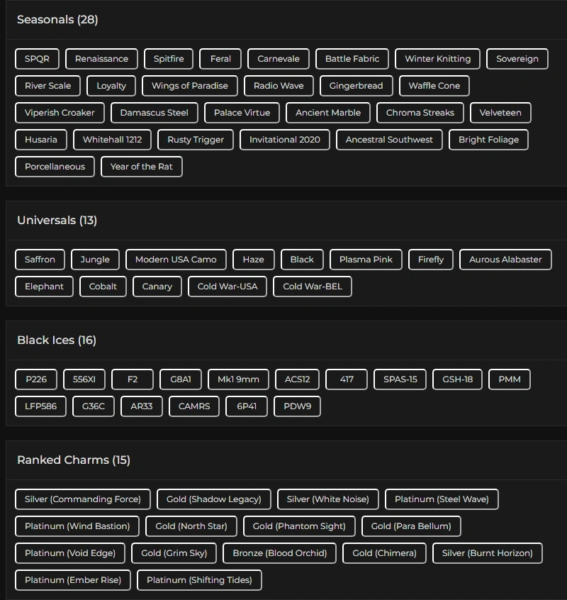 53 Operators 16x Black Ice 13 Universal Skins 15 Pro League Sets 6 Elite 107195 Renown Full Access β
