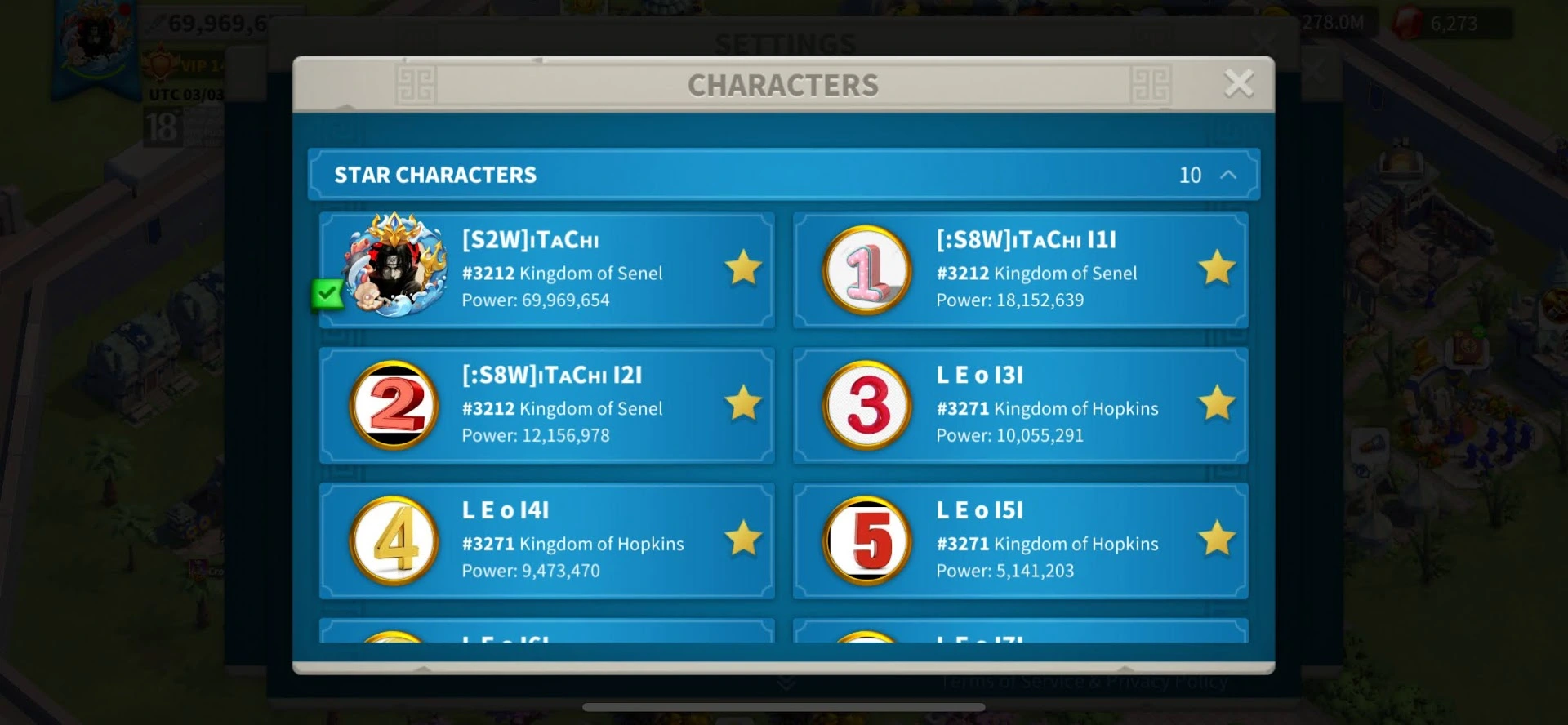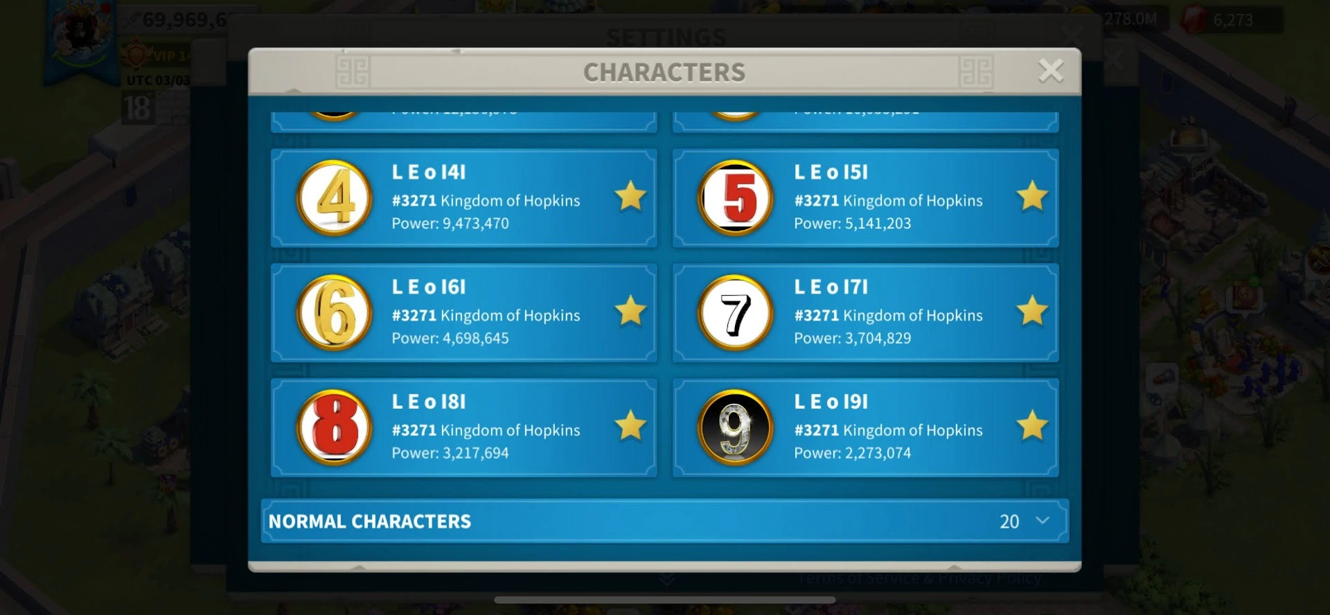 504:69M POW ⸱ Vip 14 Almost Vip 15 ⸱ T5 ⸱ Skin Poseidon Sanctuary 30Days ⸱ 6B RSS ⸱ 681 Days SP