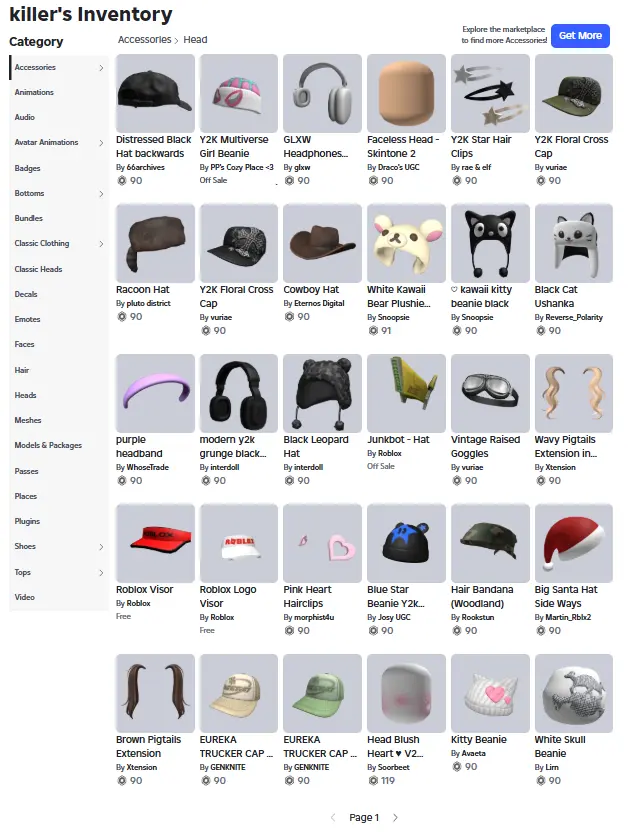 RBL2296 GLXW Headphones, Y2K Multiverse Girl Beanie, White Kawaii Bear Plushie, Kitty Beanie, Modern Y2K Grunge Headband, Pink Heart Hairclips, (G)