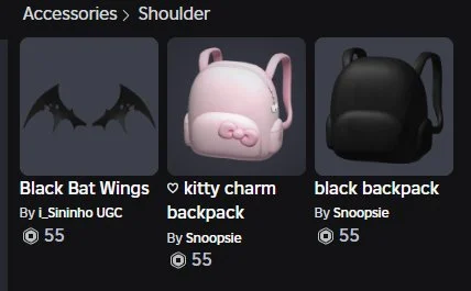 RBL2362 //Black Bat Wings, Kitty Charm Backpack, Black Backpack, Simple Set Of Black Devil, Adorable Curly Bangs Black (K)