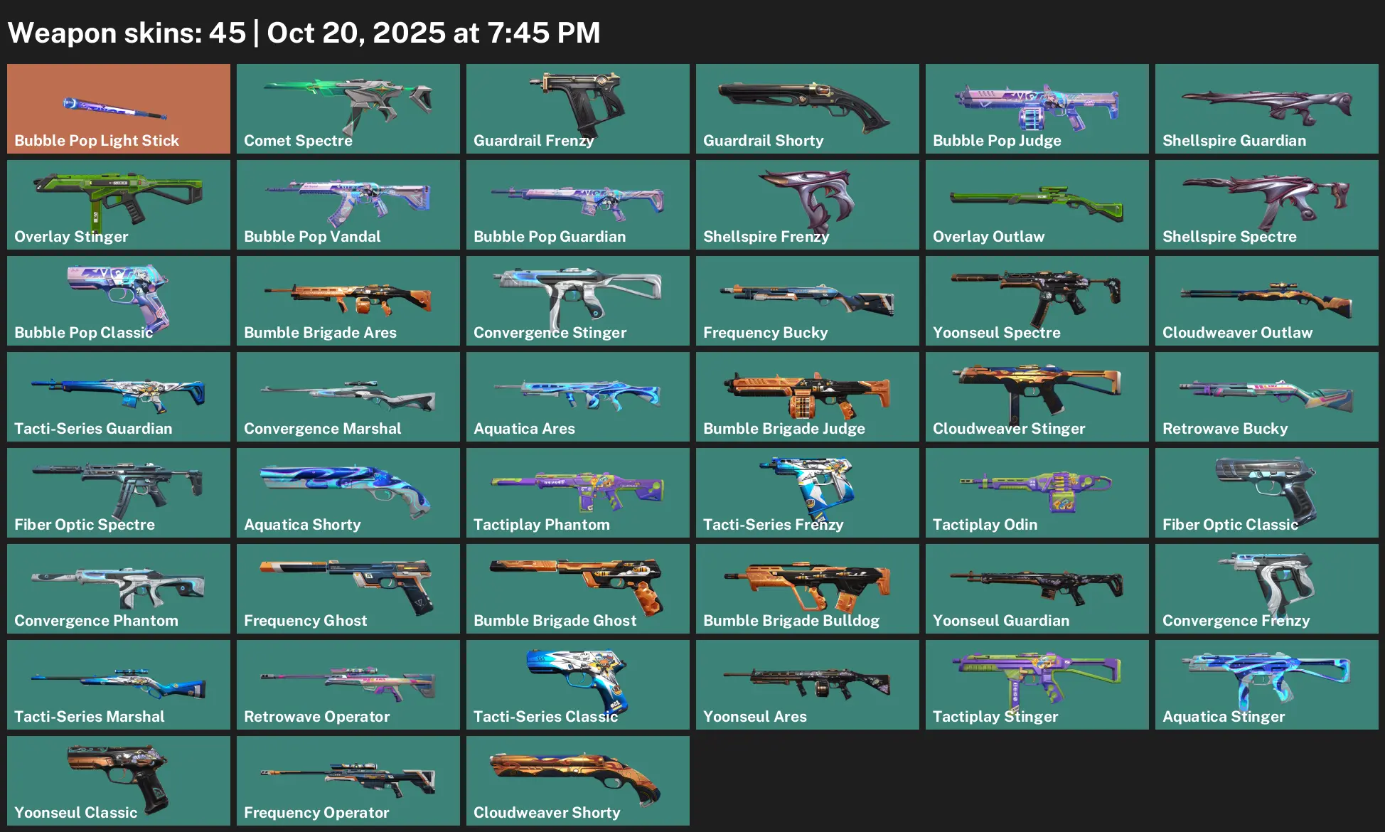 LA | 45 Skins | exp IRON 3 | Tactiplay Phantom | Guardrail Frenzy | Fiber Optic Classic | Bubble Pop Light Stick | Comet Spectre | S4G