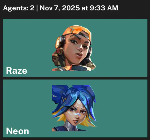 ๐ NA ๐ธ Unranked ๐ฒ 3 Skins ๐ 700 VP ๐ 2 Agents ๐ Value: 875 VP ๐ฉ Luxe Spectre ๐ญ Schema Stinger ๐ค Hydrodip Frenzy
