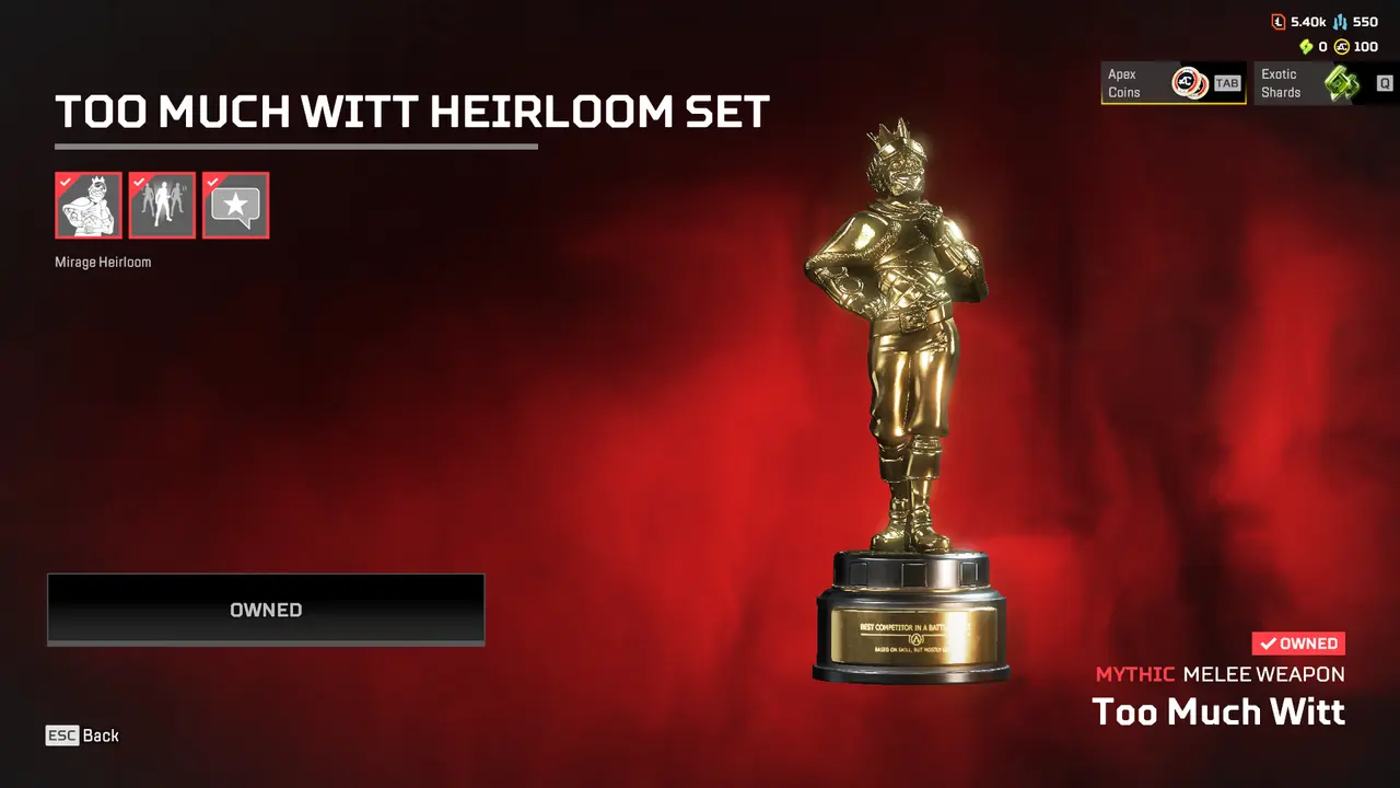 AP470 Mirage Heirloom, Level 172, All Legends Unlocked, Legendary Skins (Runway Renegade, Dark Side, Sea Legs, Queenpin)