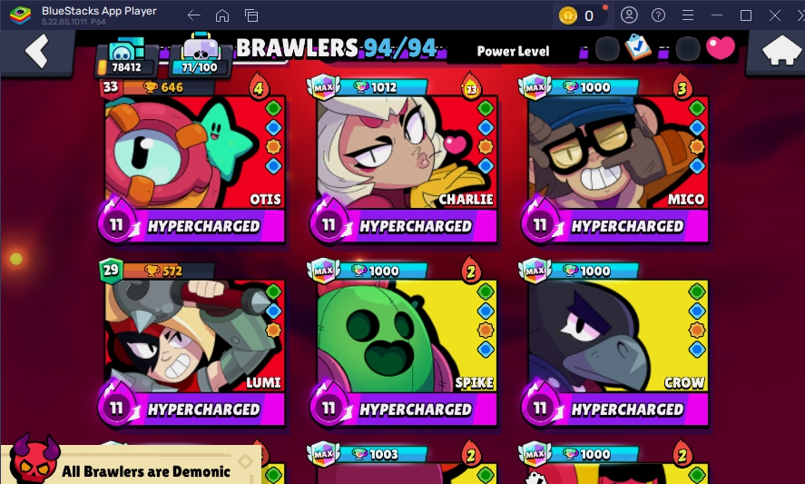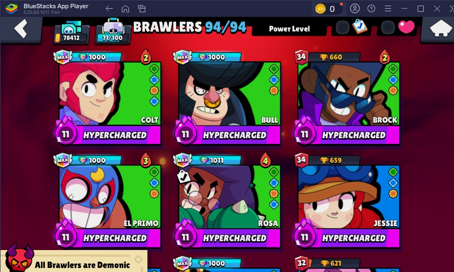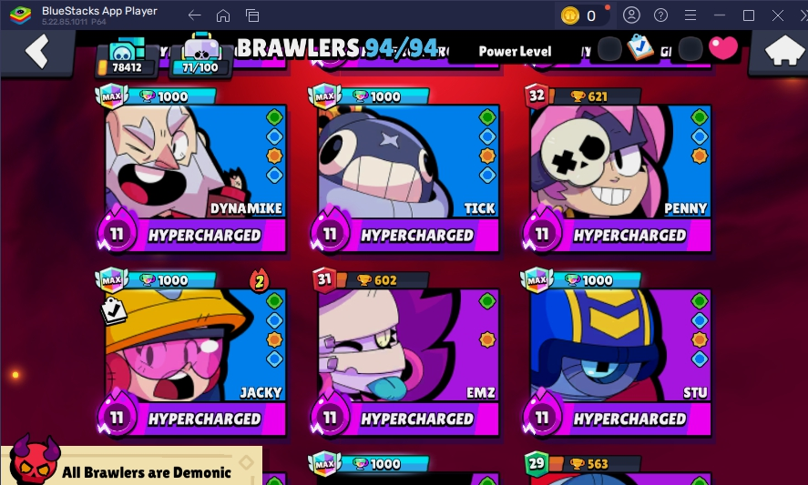 11 TITLES ⭐ 277 SKINS ⭐ 78.400 TROPHY ⭐ 94 BRAWLERS ⭐ 55 MAX ⭐ 42 HYPERCHARGED ⭐ CORSAIR COLT ⭐ MOON-CURSER PENNY ⭐ CAPTAIN CARL ⭐ SKELETAL SURGE ⭐ FURIOS FANG ⭐ SPIKE ⭐ LEGENDARY ⭐ LEON