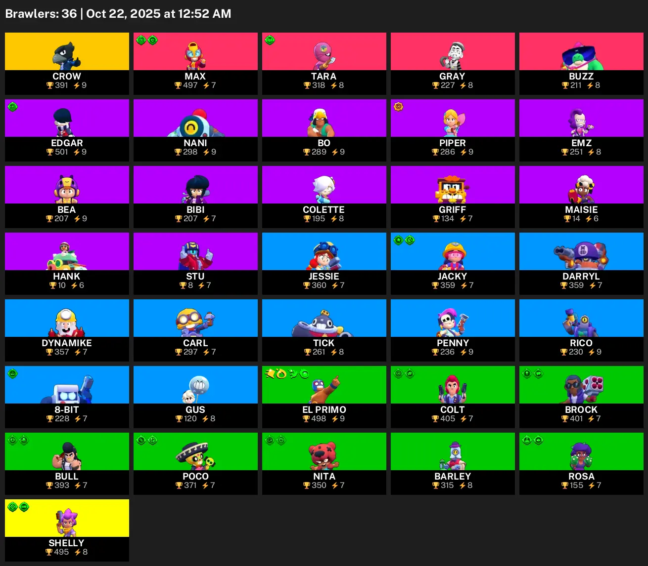 10234 Trophies | 1 Legendary | 36 Brawlers | Instant Delivery