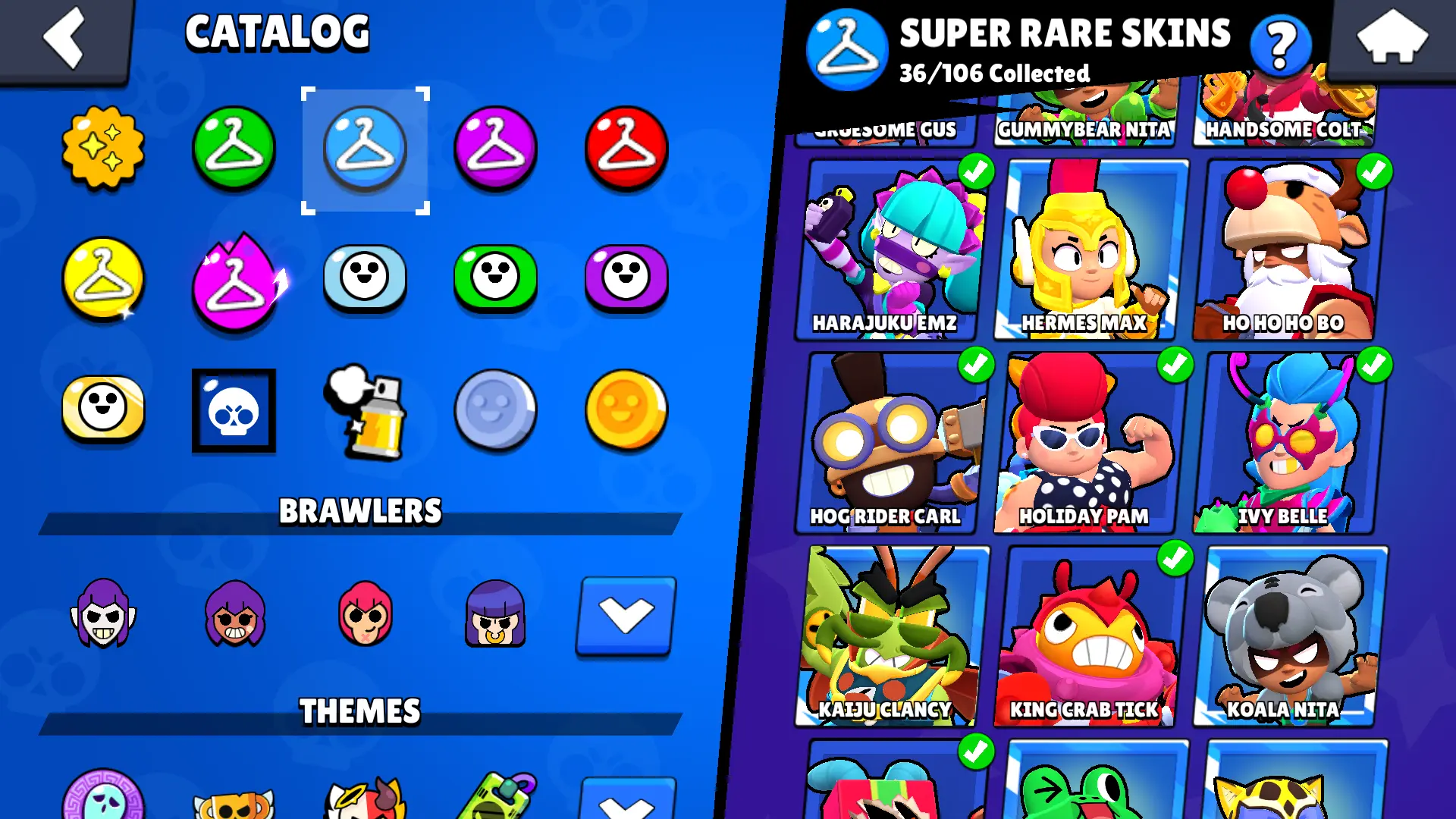 103 SKINS | 16954 TROPHIES | ANTIVIRUS 8-BIT | GODZILLA BUZZ | HO HO HO BO | FLAG BEARER PIPER | WARRIOR BO | SPIRIT KNIGHT FRANK | CURSED PIRATE BIBI | IVY BELLE | GALAXY STORM LOLA | DARK CLOWN SAM | TECH MAISIE | ANGEL GENE | ROBO SPIKE | 73 BRAWLERS