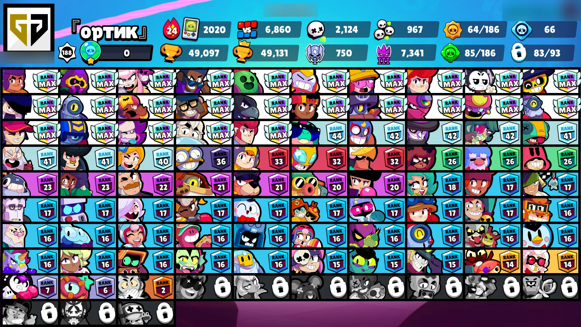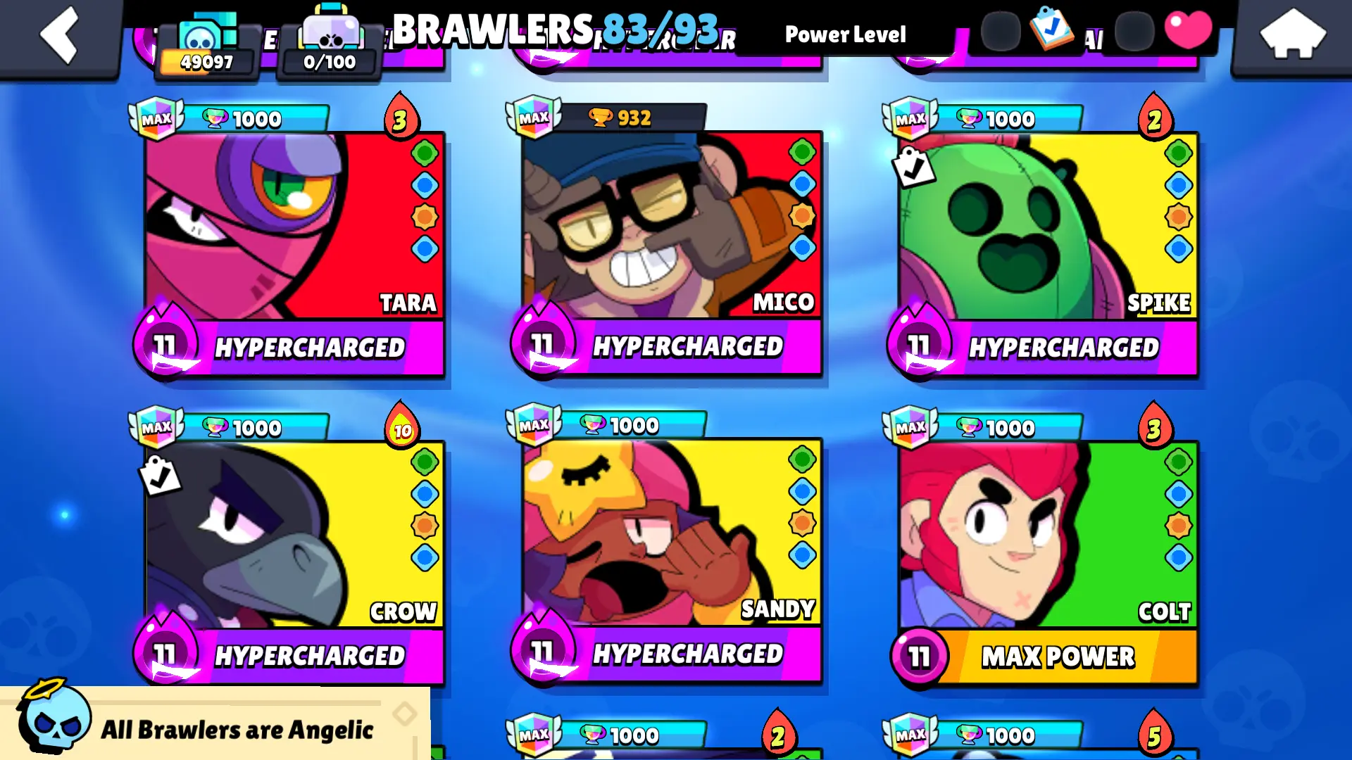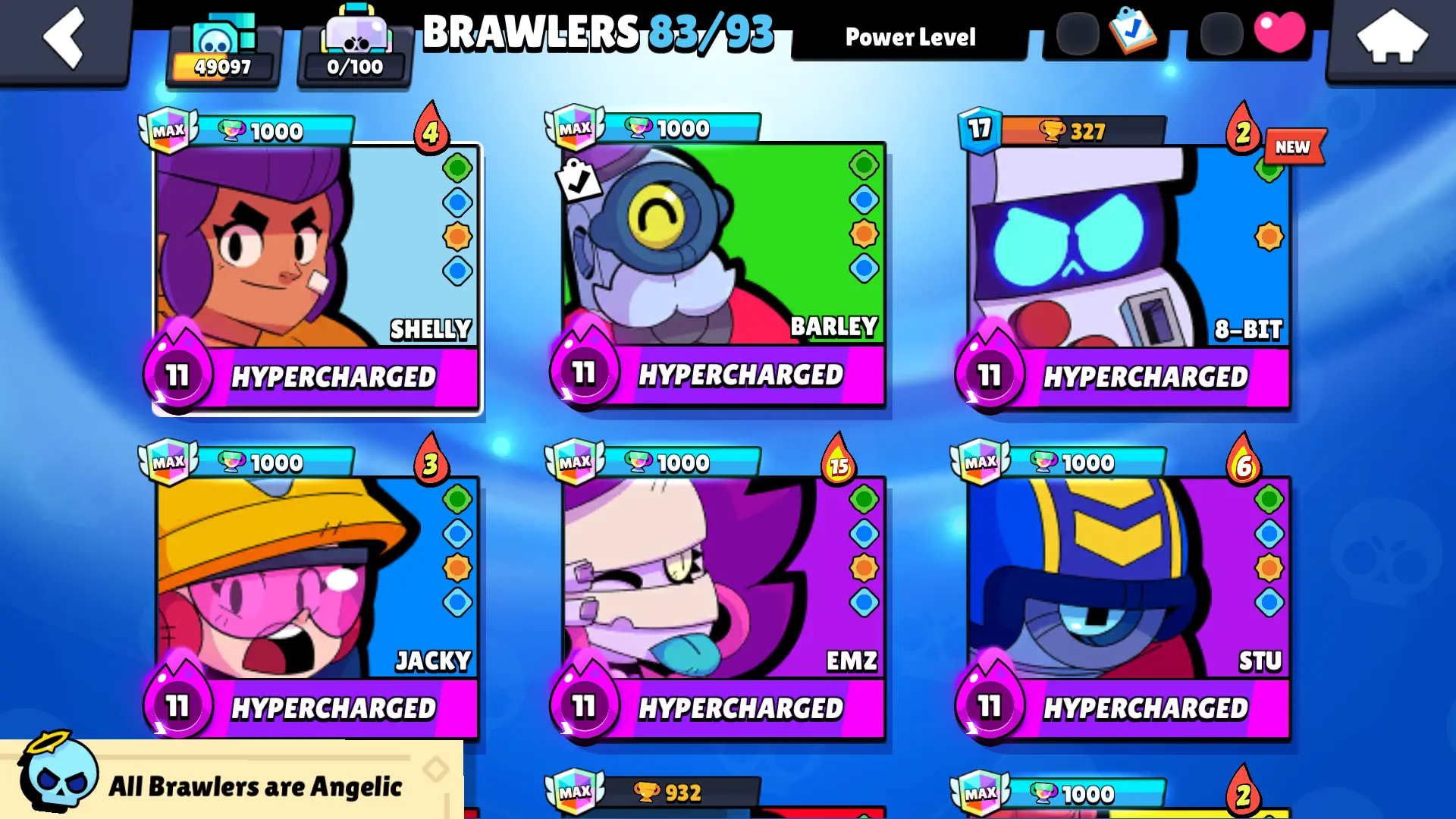 140 SKINS | 49097 TROPHIES | BAKESALE BARLEY | HERMES MAX | GODZILLA BUZZ | SURGE LIGHTYEAR | ROGUE MORTIS | REINBEAR NITA | SUPER RANGER BROCK BLUE | SPICY MIKE | FLAG BEARER PIPER | WARRIOR BO | UNDERWORLD BO | IMPIE COLETTE | 83 BRAWLERS