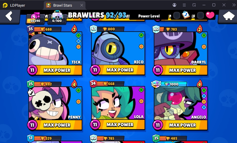 168 SKINS 💯 CAVALERY PIPER 💜 60.290 TROPHIES 🏆 92 BRAWLERS 🐼 15 HYPERCHARGED 🩸 34 MAX BRAWLERS 💛 CURSED KENJI 🧡 POP PENNY 🧡 SANTA STU 🧡 UNO CHESTER 🧡 WASP BO 💯