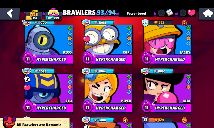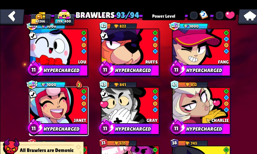 243 SKINS ⭐ 61.300 TROPHY ⭐ 93 BRAWLERS ⭐ 50 MAX ⭐ 37 HYPERCHARGED ⭐ CHAINSAW BUSTER ⭐ MECHA MORTIS ⭐ VALKYRIE JANET ⭐ DIY SURGE ⭐ OCTO FANG ⭐ SPIKE ⭐ LEGENDARY ⭐ LEON