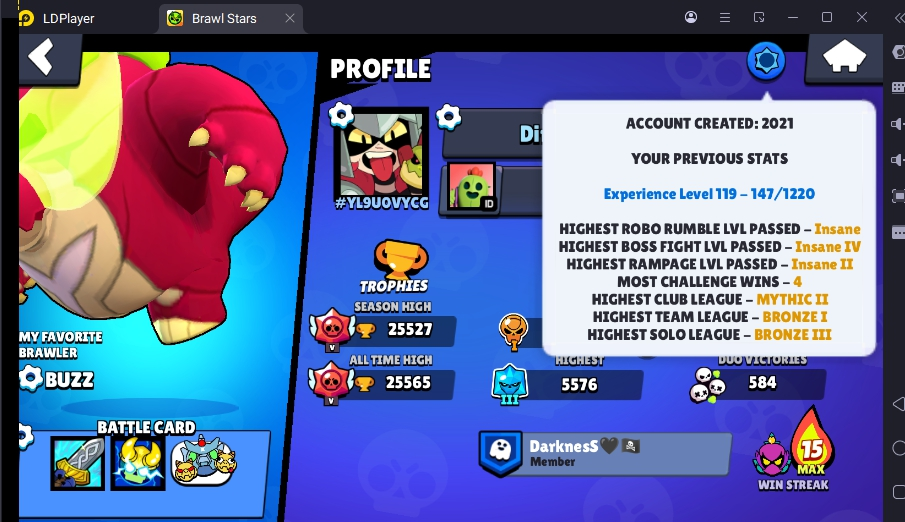 47 SKINS 🩵 25.527 TROPHIES 🏆 61 BRAWLERS 🧸 2 HYPERCHARGED 🍒 6 MAX BRAWLERS ⭐ BORN BAD BUZZ 🩵 CHICKEN RICO 🩵 CORAL BELLE 🩵 DYNASTY MIKE 🩵 FENRIR BUZZ