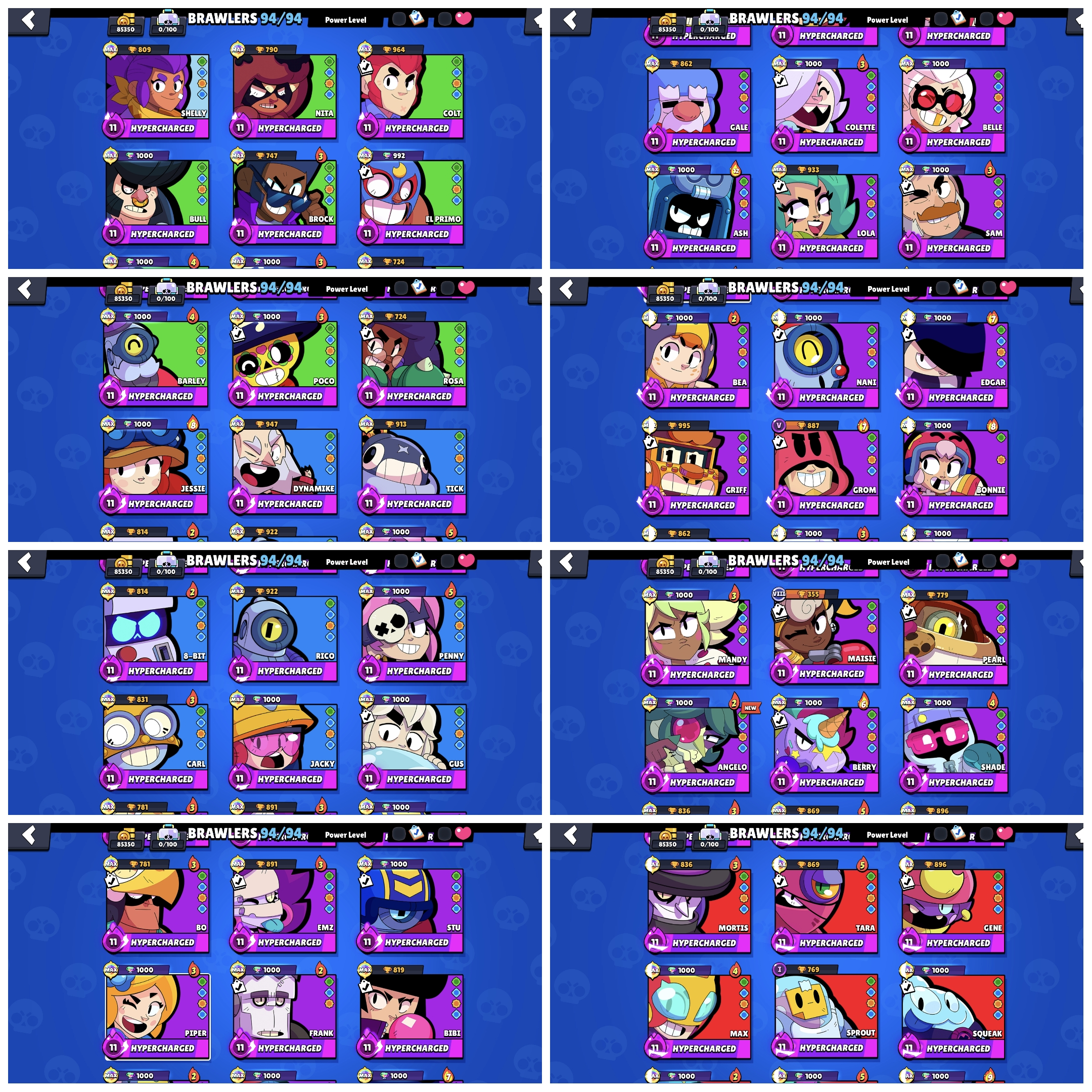 π 85k Trophy π Brawl Cup Exclusive Pin π Red King Frank π Blue King Frank π 1x Old Masters π 1x New Masters π 1000 Gems π Fully Maxed π 350 Skins π