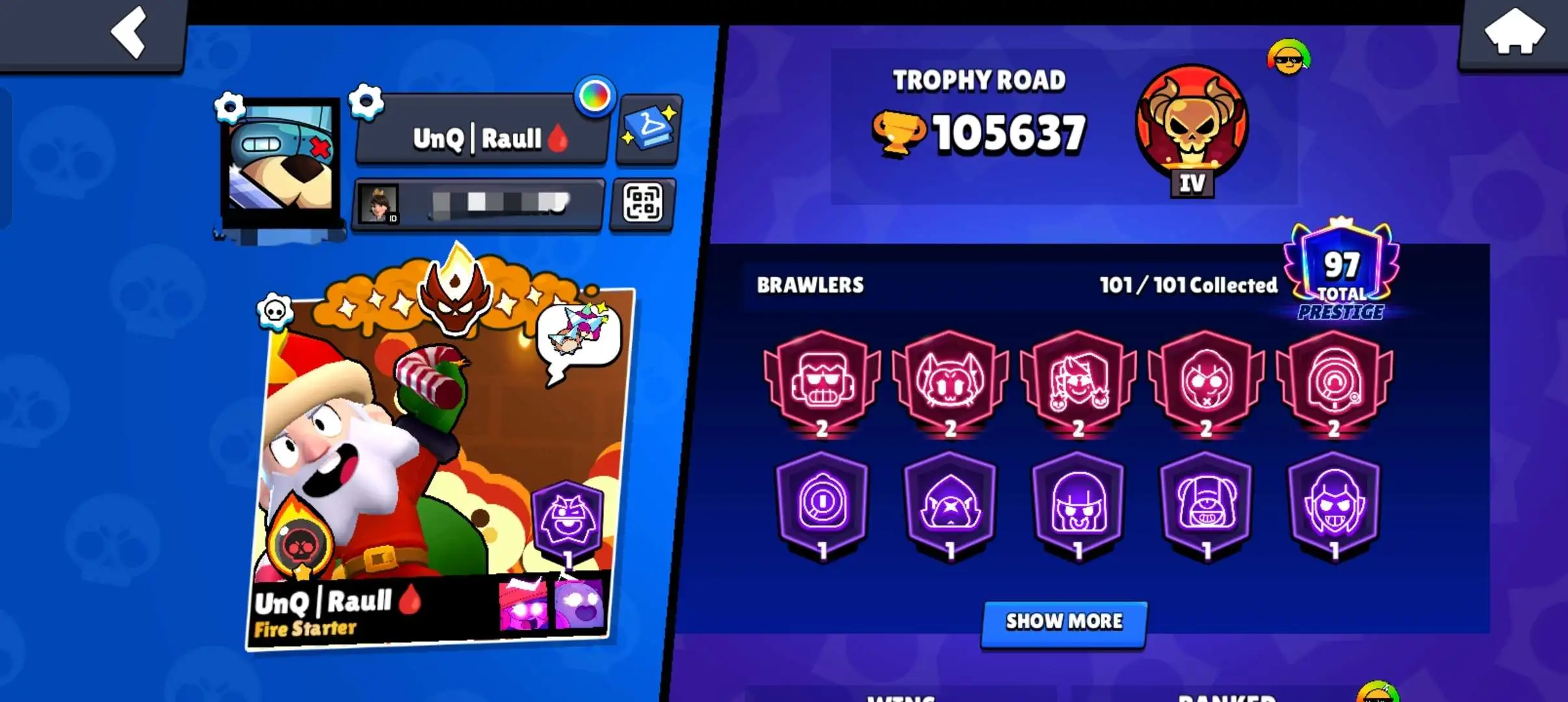 Bs 105k🏅 Almost max . 8 Masters . Masters 2 🔥 Ricochete ⸱ Ronin ruffs ⸱ Born bad buzz 🔥93 max . 445 skins ✅ 96 hypercharges . 34 buffies