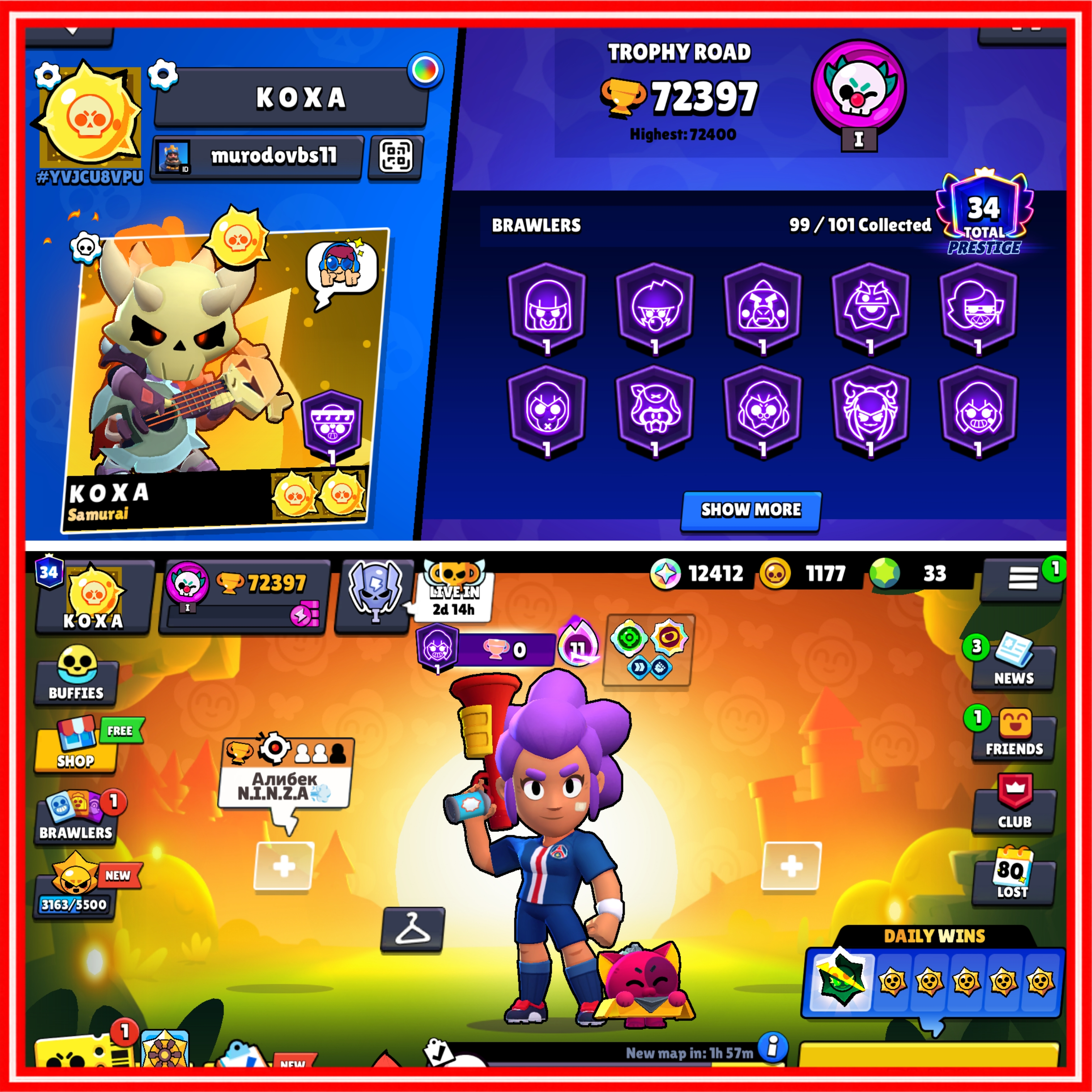 🔥 BS 72000 TROPHY 🔥 99 BRAWLS 🤝 45 HYPER ✨ 17 LVL 11 🥵 62 MAXED BRAWLS TOTAL 🥵 300+ OP SKINS 🔥 CHEAPEST IN MARKET 🔥