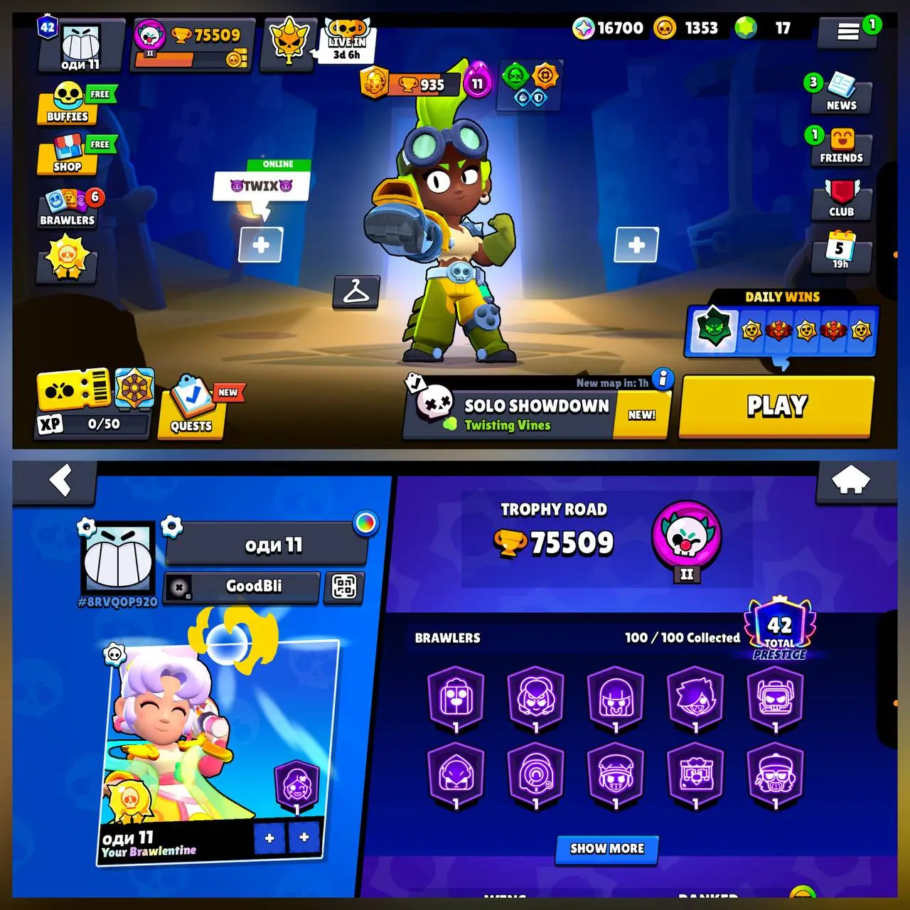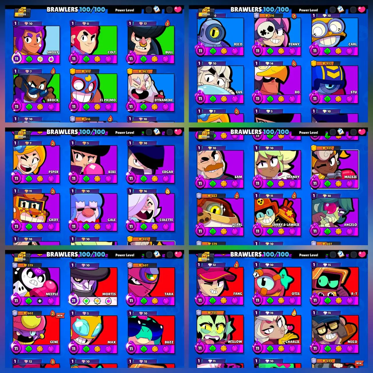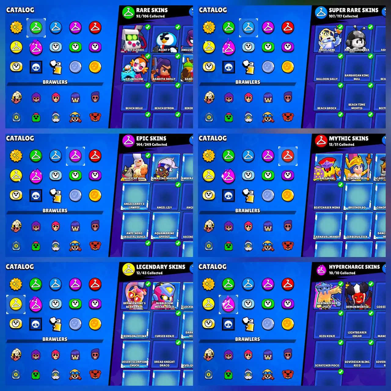 🔥 BS 75K TROPHY 🔥 100 BRAWLS 🥂 42 PRESTIGE 🥺 49 HYPER CHARGE 🥵 8 LVL 11 🤝 57 MAXED TOTAL ✨ 🥵 380+ PRIMIUM SKINS ✨ CHEAPEST IN MARKET 🔥