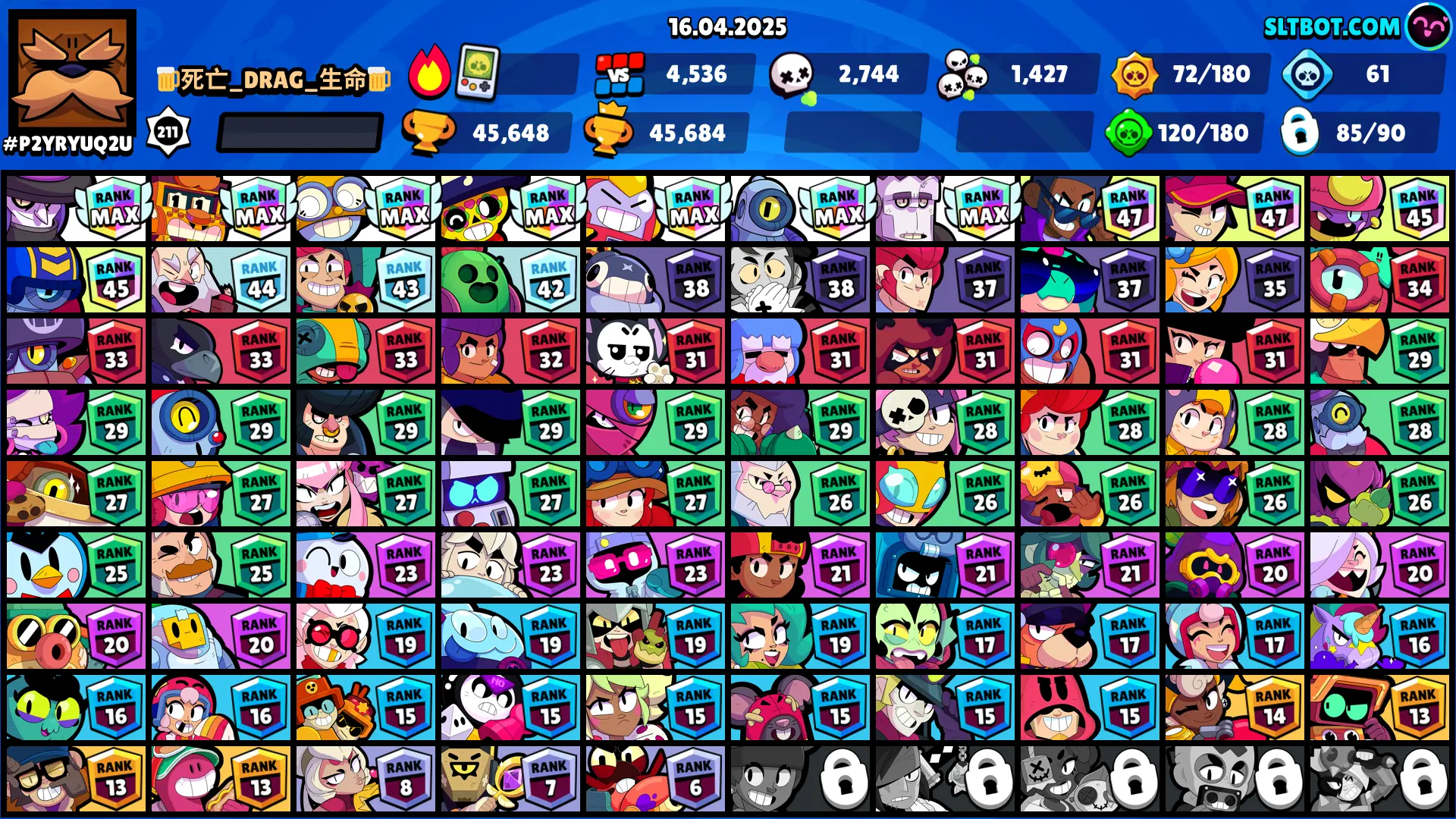 92 SKINS 🩵 45.644 TROPHIES 🏆 85 BRAWLERS 🧸 4 HYPERCHARGED 🩸 10 MAX BRAWLERS 🩷 EL REY PRIMO 🩵 FLAG BEARER PIPER 🩵 SPOREMIND CORDELIUS 🩵 MAGMA MANDY🩵 MEGA BOX DARRYL 🎀