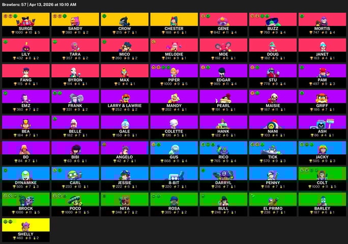 🔥 OLD Brawl Stars Collection Account 2022 Wolf Leon Demon Mortis Fan Fang El Sponge,Orochi Edgar