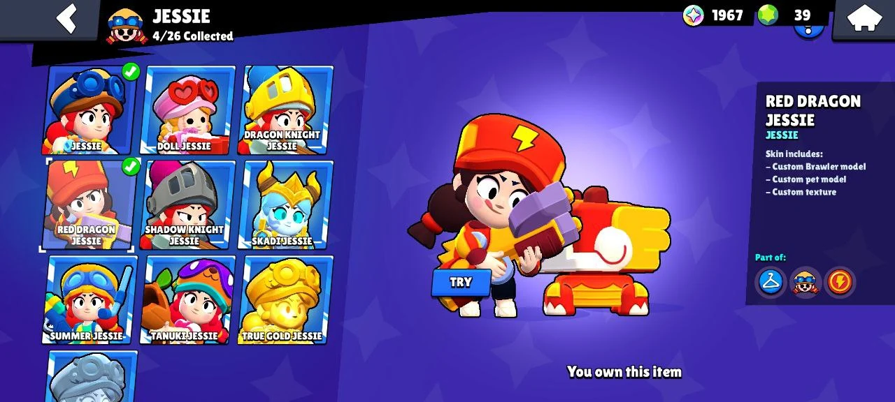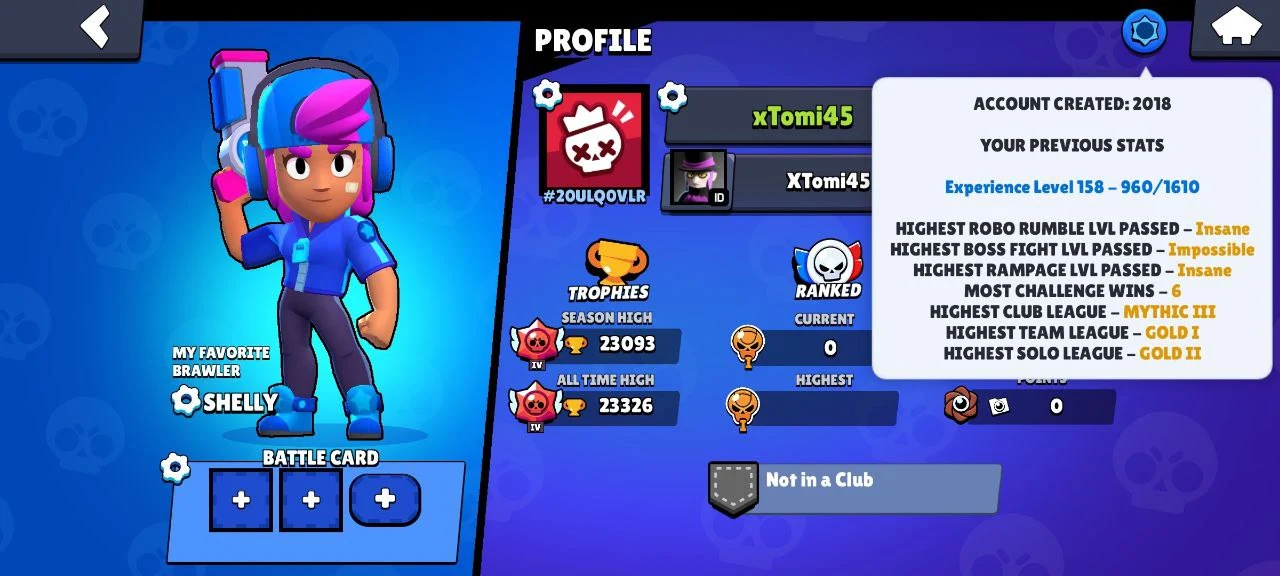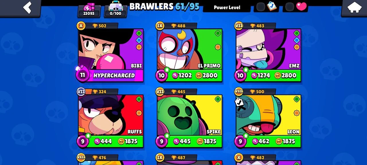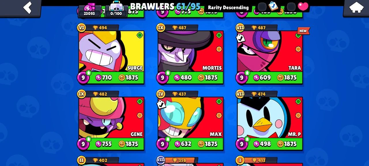 STAR SHELLY 🌟 1 MAX ⚡ 1 HYPERCHARGED 💫 23,093 TROPHIES 🏆 61/95 BRAWLERS ✨ 7 LEGENDARY 🎯 30 OG SKINS 🎨 RED DRAGON JESSIE 🐉 RICOCHET 💥
