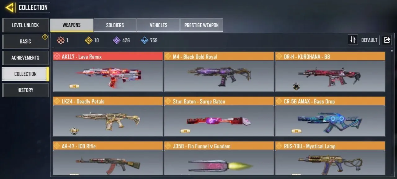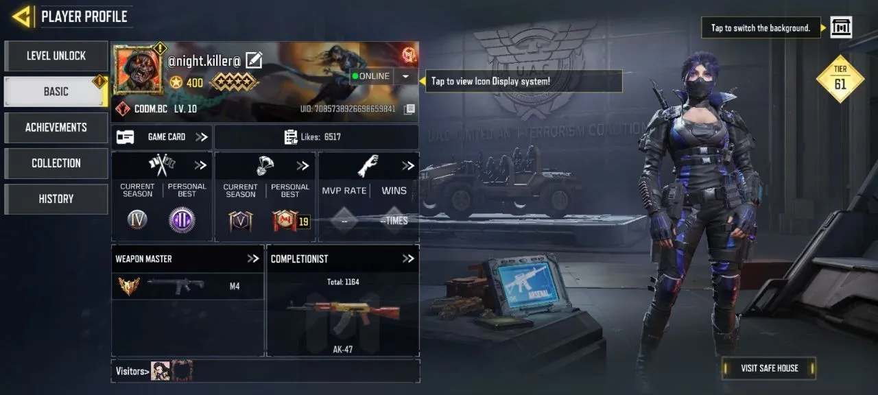 iOS Android 🎮 Level400 🛍️ Rank Grand Master 💲 426 Epic 🧨 10 Legendary ☠️ 1 Mytich 🏆 Code547