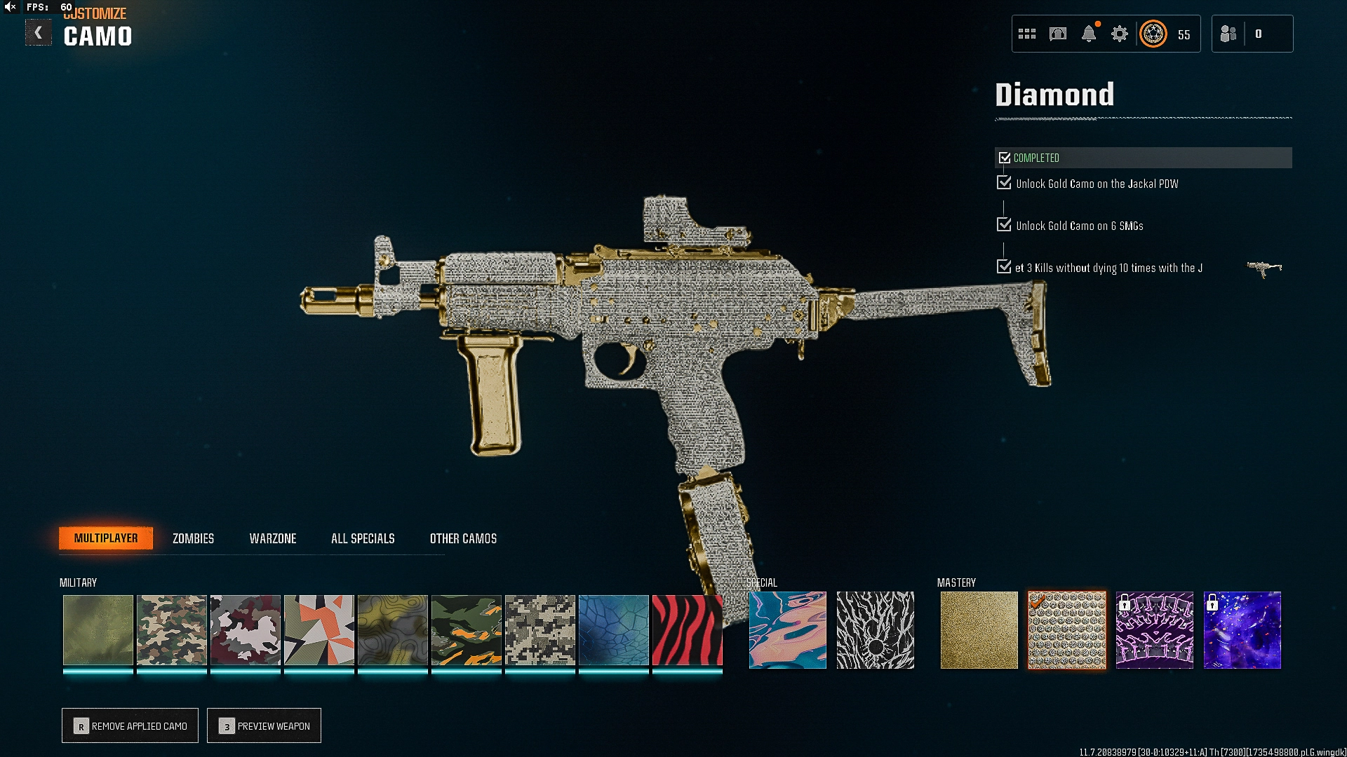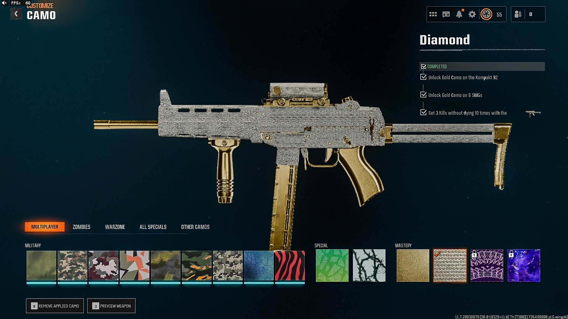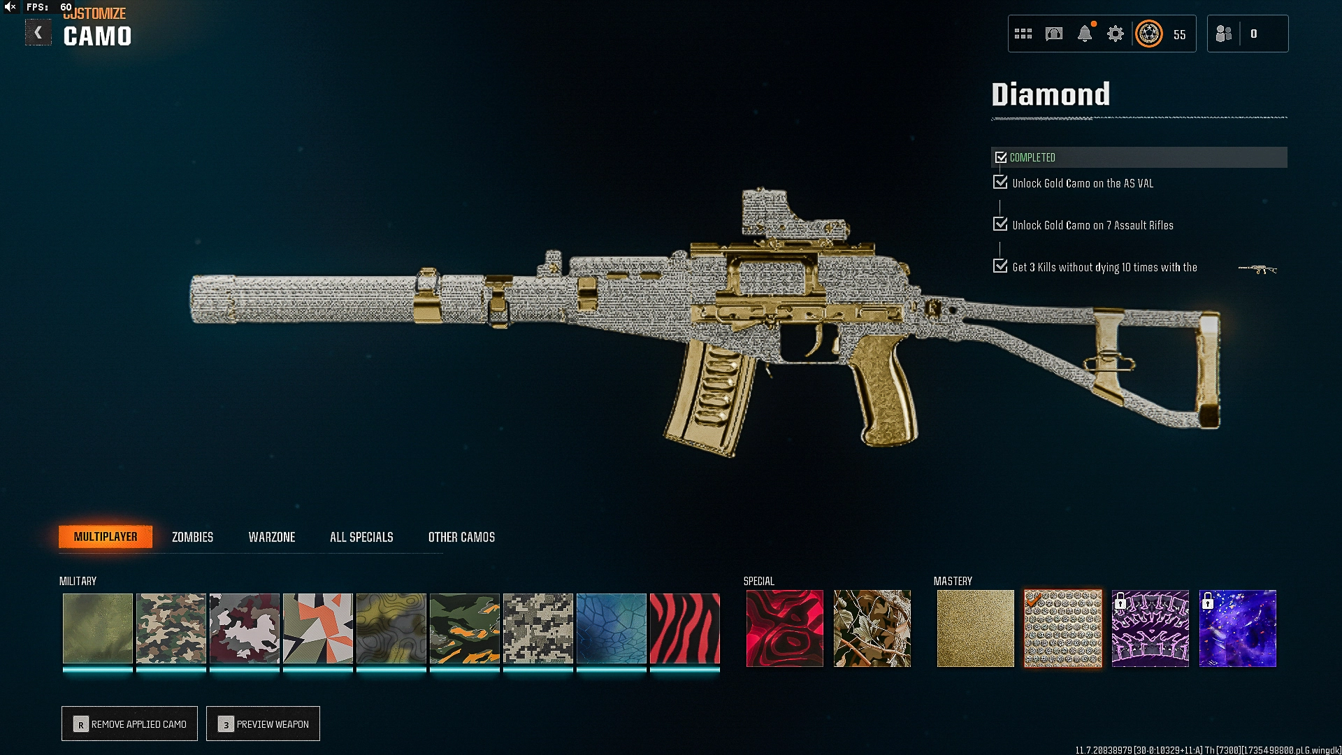 🔥 20 Diamond Camos 🚀 260 Camos 💎 Level 55 + 50 Wins ⚡ 17 Operators 🌟 Ranked Ready 🎯 Prestige-Ready 🔒 Full Access 🔗 Linkable: Steam, Battle.net, PSN, Xbox 🎮 BO6 #V2P7L5