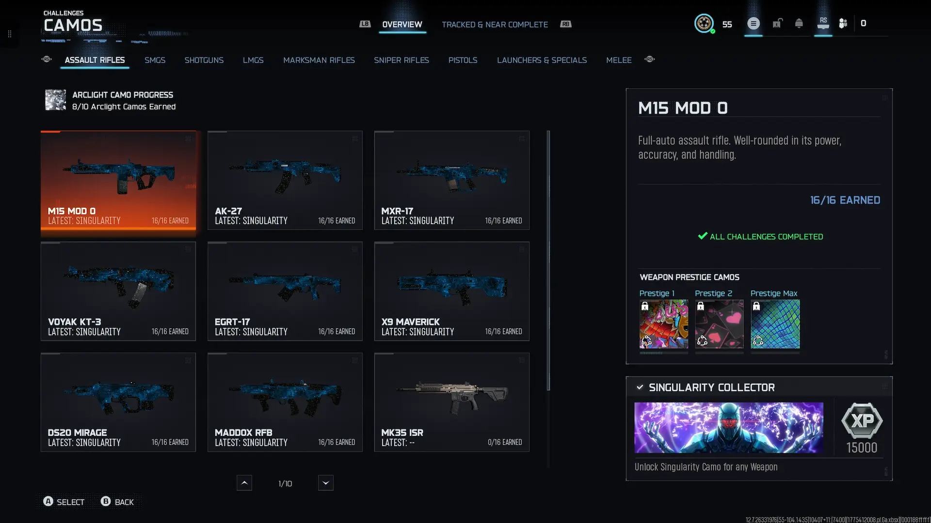 30 Singularity camos💎 50 wins Completed 🏆 Rank Ready ✅ level 55 Max 🎯 480 camos 🧿 Safe & Secure 🔐 Full Access ✅ 🔗 Linkable to STEAM • BNET • XBOX • PSN
