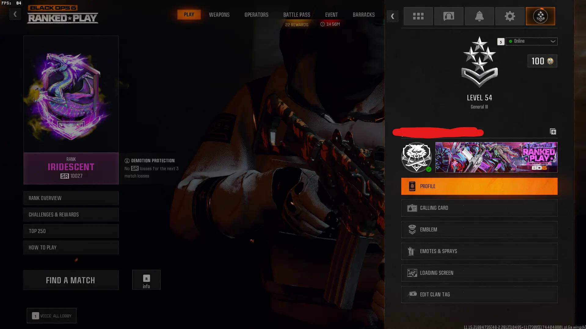 🐠 BO6 【✔ Iridescent Rank SZN 4 . 10059 SR 】⚡ Level 55 🔒 Full Access 🌟 All Info is Changeable 🔗 Linkable to STEAM / BNET / PSN / XBOX ✔ IRI SZN 4 ☄ #ZBMQ5A
