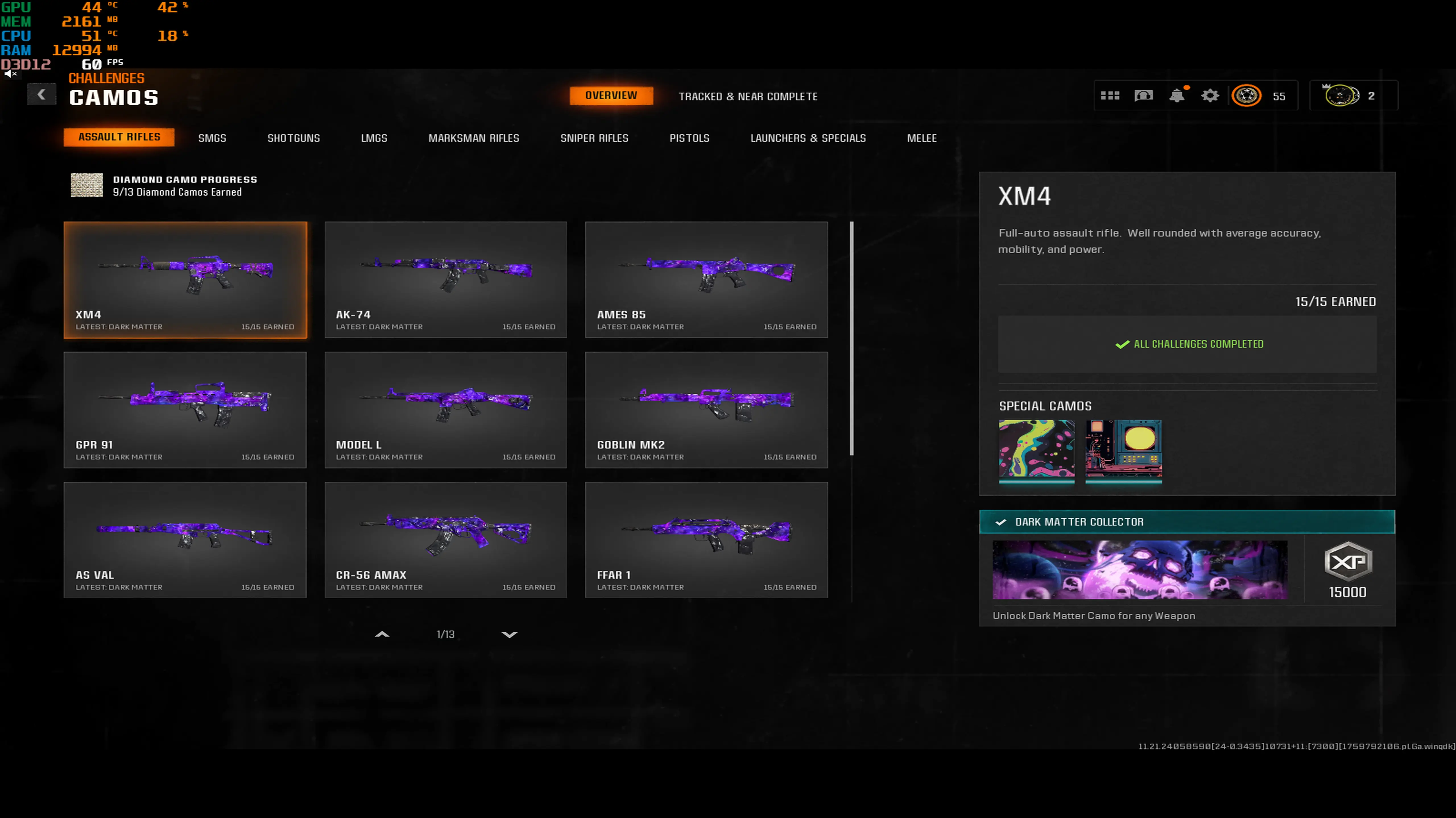 🏆 BO6 / Warzone 🏆 33x Dark Matter Camo on META GUNS 🏆 33x ( Dark Spine , Diamond , Gold ) 🏆 495 Camos 🏆 Ranked Ready 🏆 Level 55 🏆 50 Wins 🏆 Perfect for Ranked Push 🏆 Steam , Battle Net , PSN , XBOX #PYaGEa