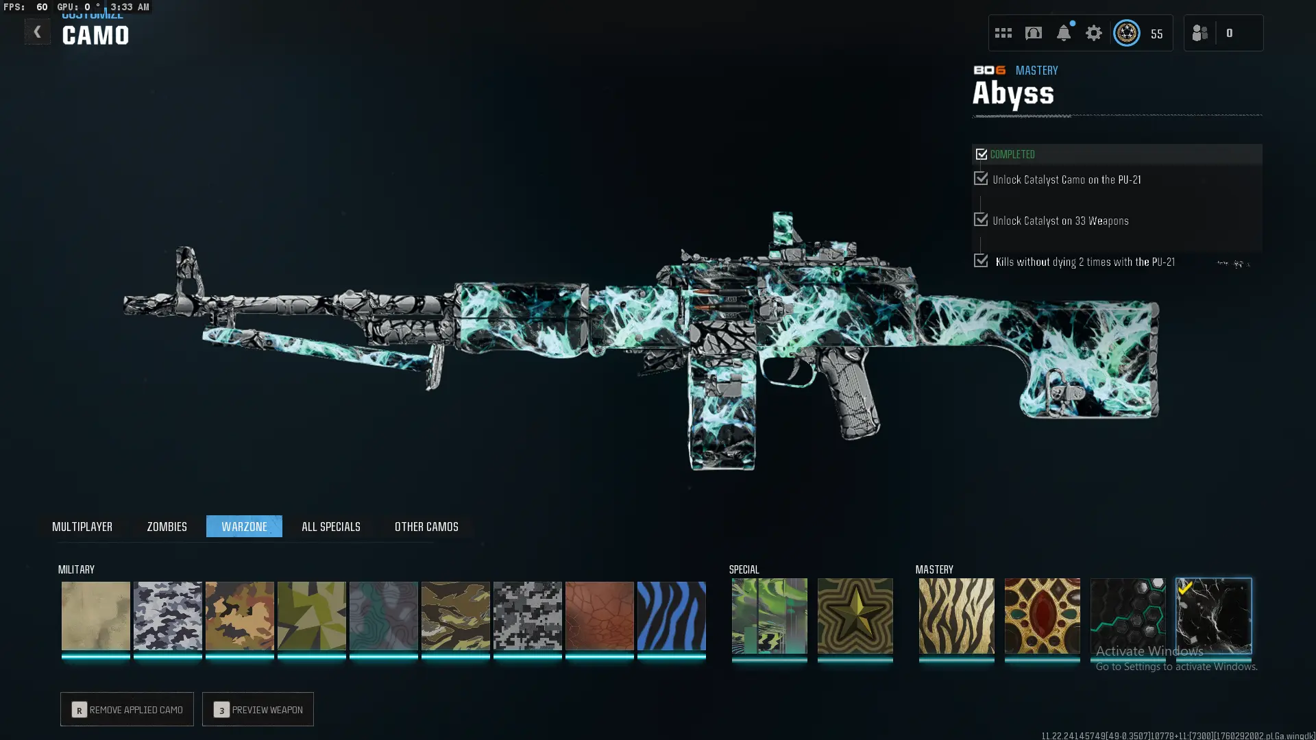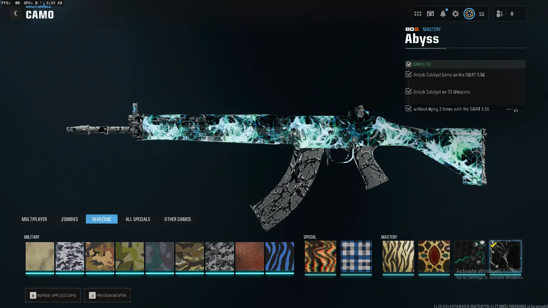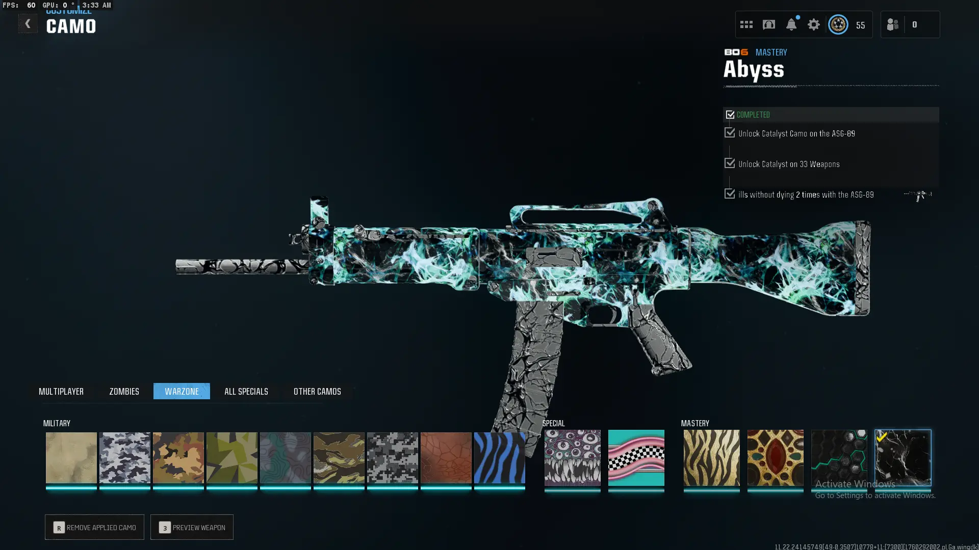 🎯 BO6 WZ4 🎯【 Abyss 33 Guns + Level 55 】✔ All Multiplayer Camos ⭐ Abyss Legit Unlock On All 33 BO6 Guns 🎮 Linkable to Steam / BNet / Xbox / PSN