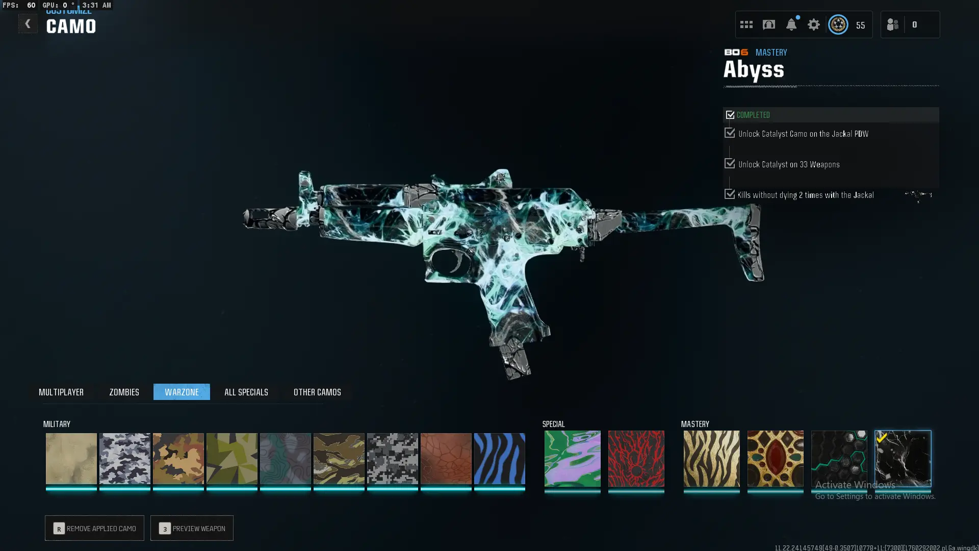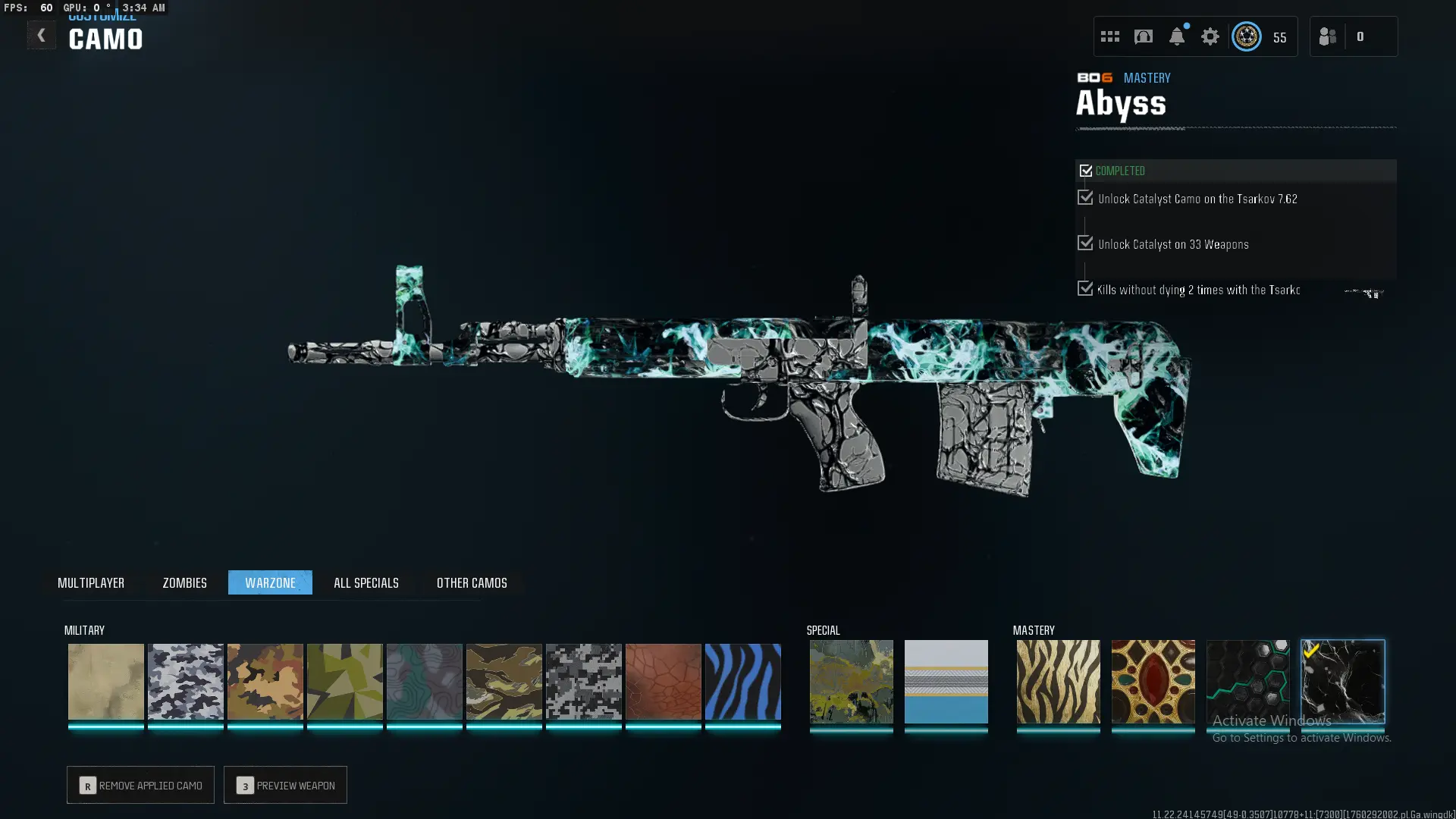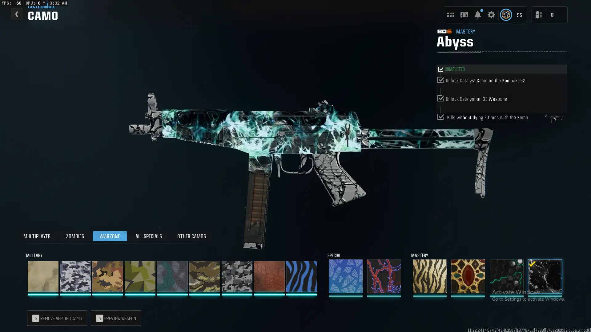 🎯 BO6 WZ4 🎯【 Abyss 33 Guns + Level 55 】✔ All Multiplayer Camos ⭐ Abyss Legit Unlock On All 33 BO6 Guns 🎮 Linkable to Steam / BNet / Xbox / PSN