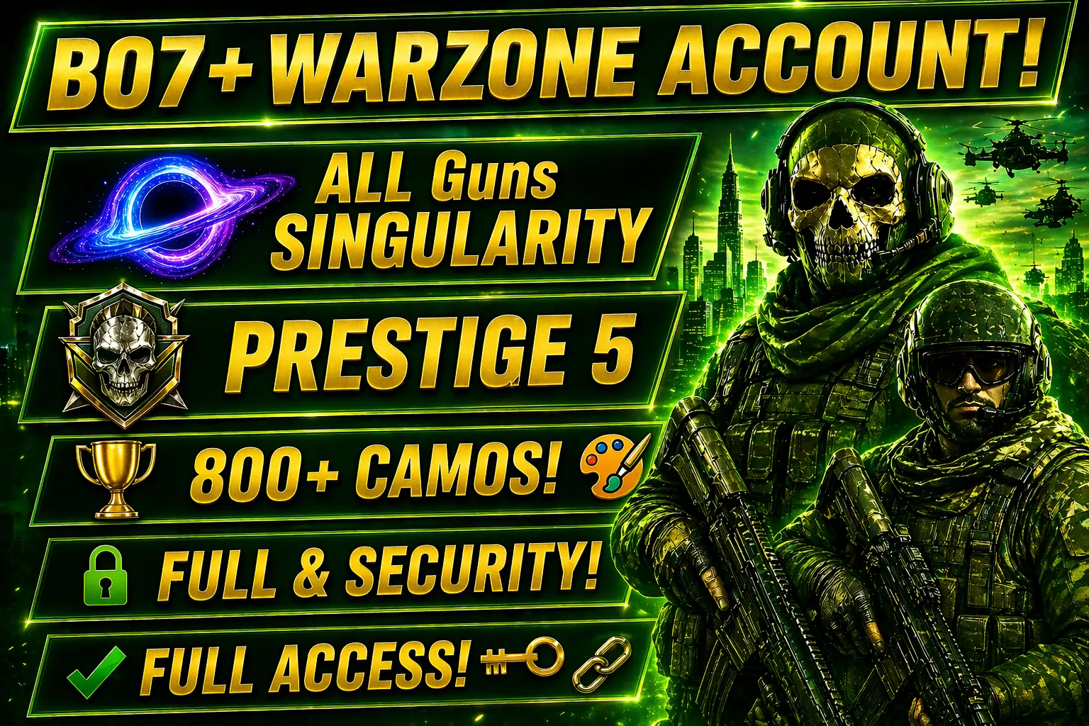 BO7⭐All Guns Singularity ⭐( Perstige 5 ) + Ranked Ready> 50 wins Completed ⚡6 gun Max + 800+ Camos 👌✅ Full Access 🔗 All Platforms linkable ⚡ Instant Delivery 🚚