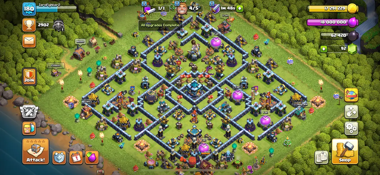 🔥 1000% TH 13 ALL MAX 🔥XP 180 [75-75-47-50-25]🔥3 EPIC EQUIPMENTS🔥4 HEROES MAX🔥WALL MAX🔥CHANGE NAME ON🔥MAX DEFENSES🔥MAX TROOPS🔥1300++ WARSTARS🔥FULL ACCESS & GUARANTEE🔥[F1844]