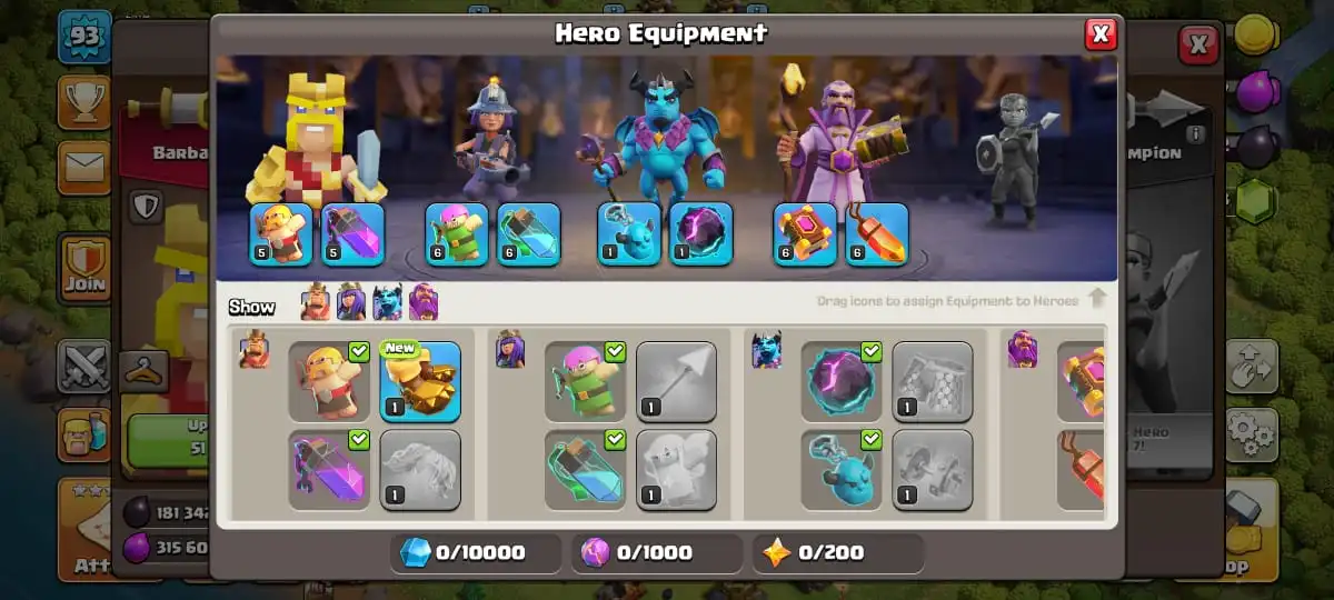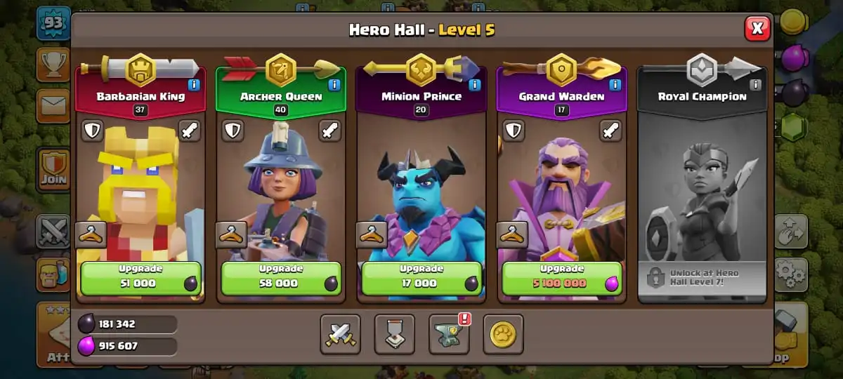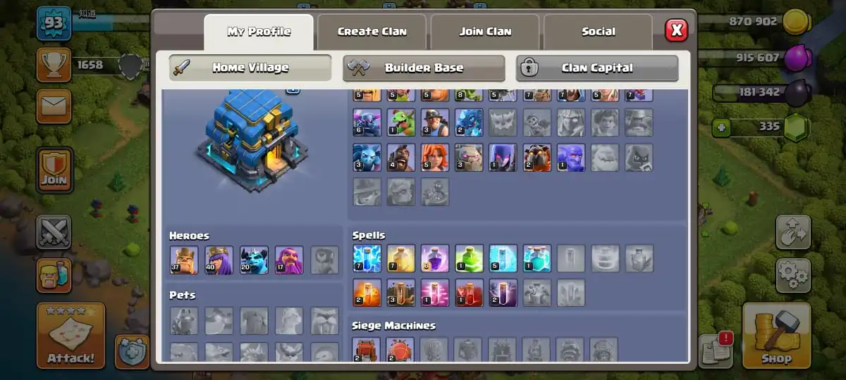 1115✨TH12✨Level 93✨King 37 Queen 40 Mini 20 Warden 17✨Gems 263✨2 Skin Hero