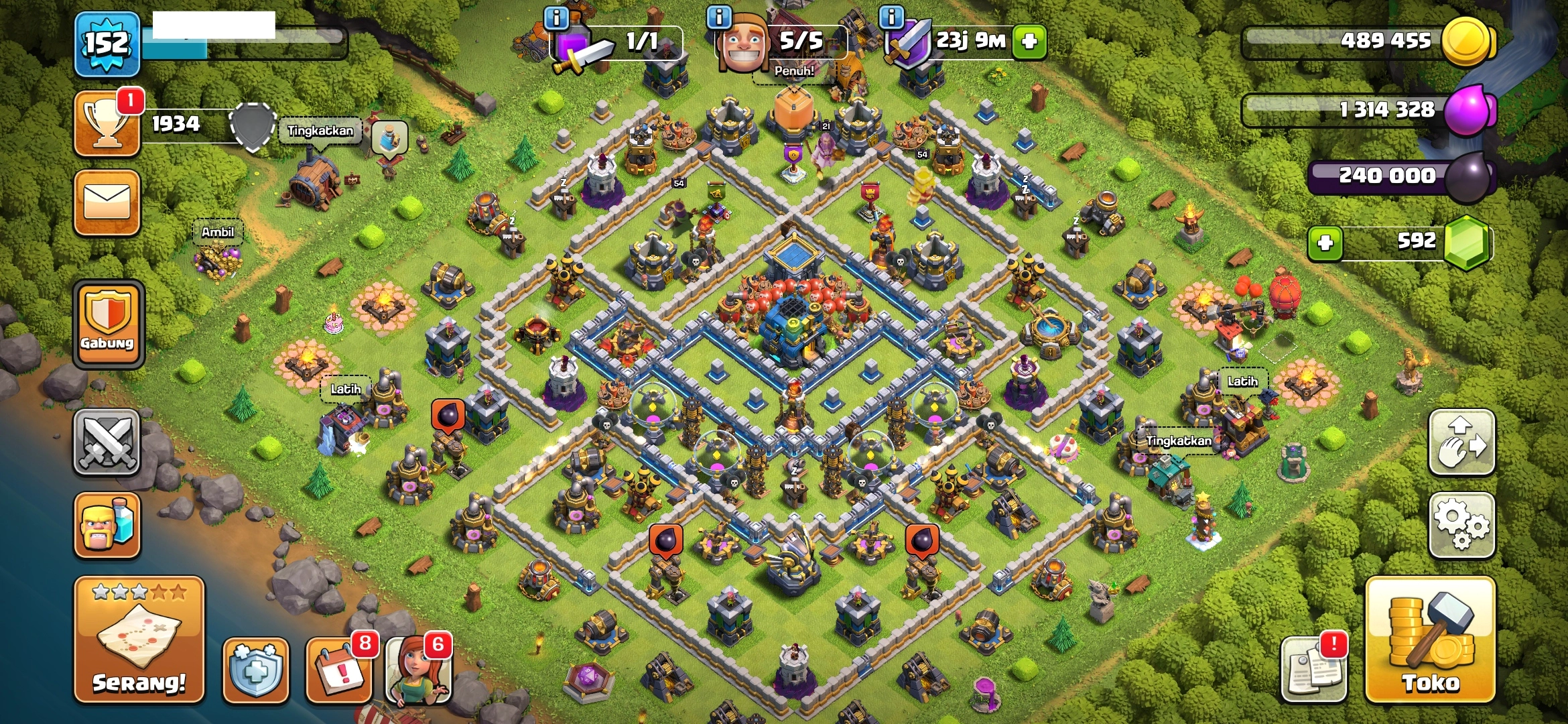 1485✨TH12✨Level 152✨King 54 Queen 54 Minion 34 Warden 21✨Gems 592