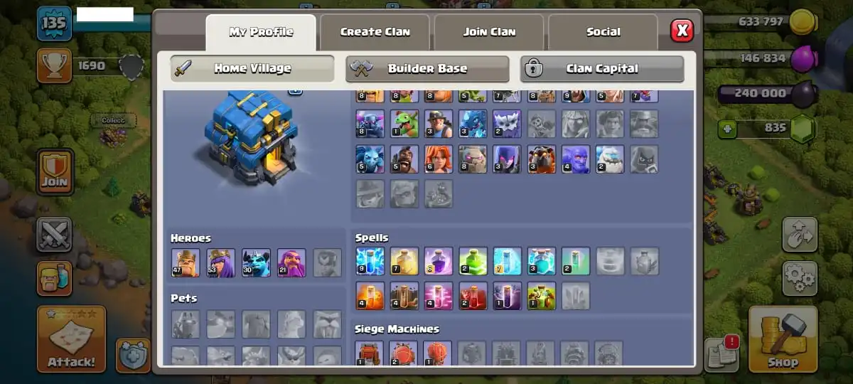 1487✨TH12✨Level 135✨King 47 Queen 53 Minion 30 Warden 21✨Gems 835