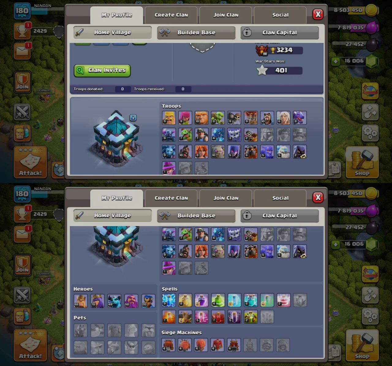 16K GEMS! ALMOST MAXEDOUT TH-13! XP-180! HEROES:-68-70-49-50-20! ALMOST MAXED TROOPS AND MAX DEFENSE! BEST DEAL