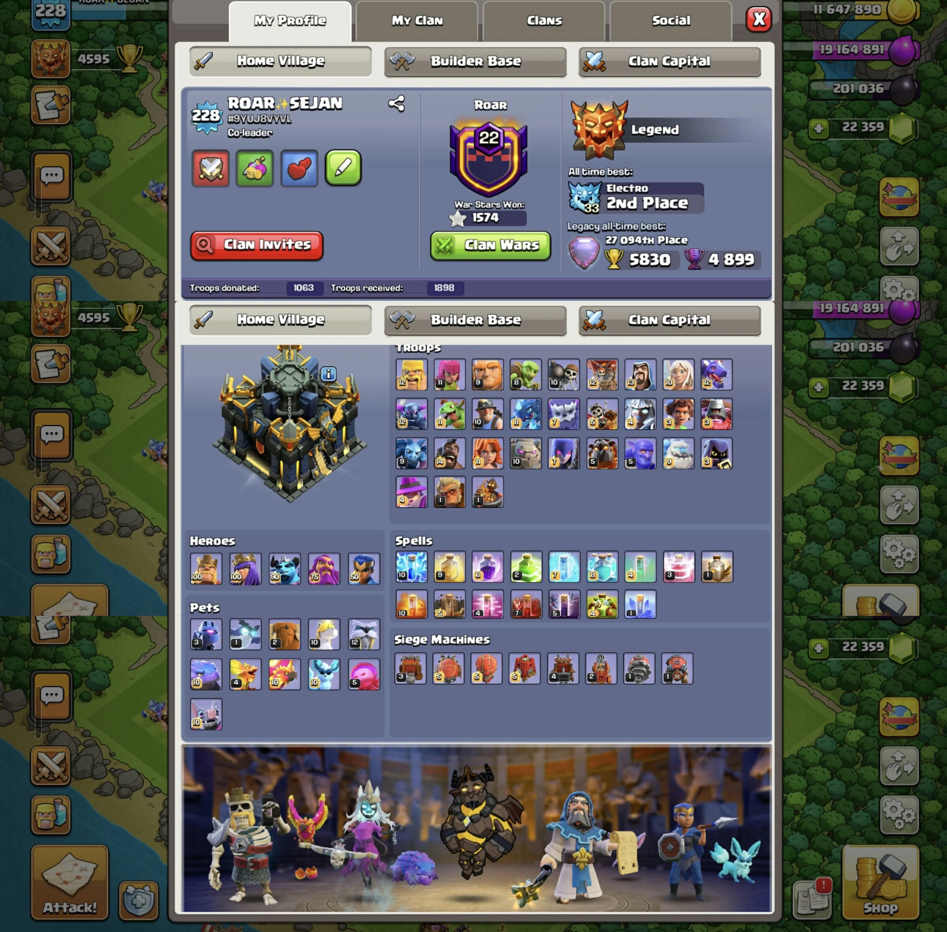 【22400 Gems】➤Th17 Max 100%➤5 Hero Max➤32/32 Equipment Max➤Helper Hut Max➤Xp:228➤Everything Max➤Full Access➤Instant Delivery (KH5)