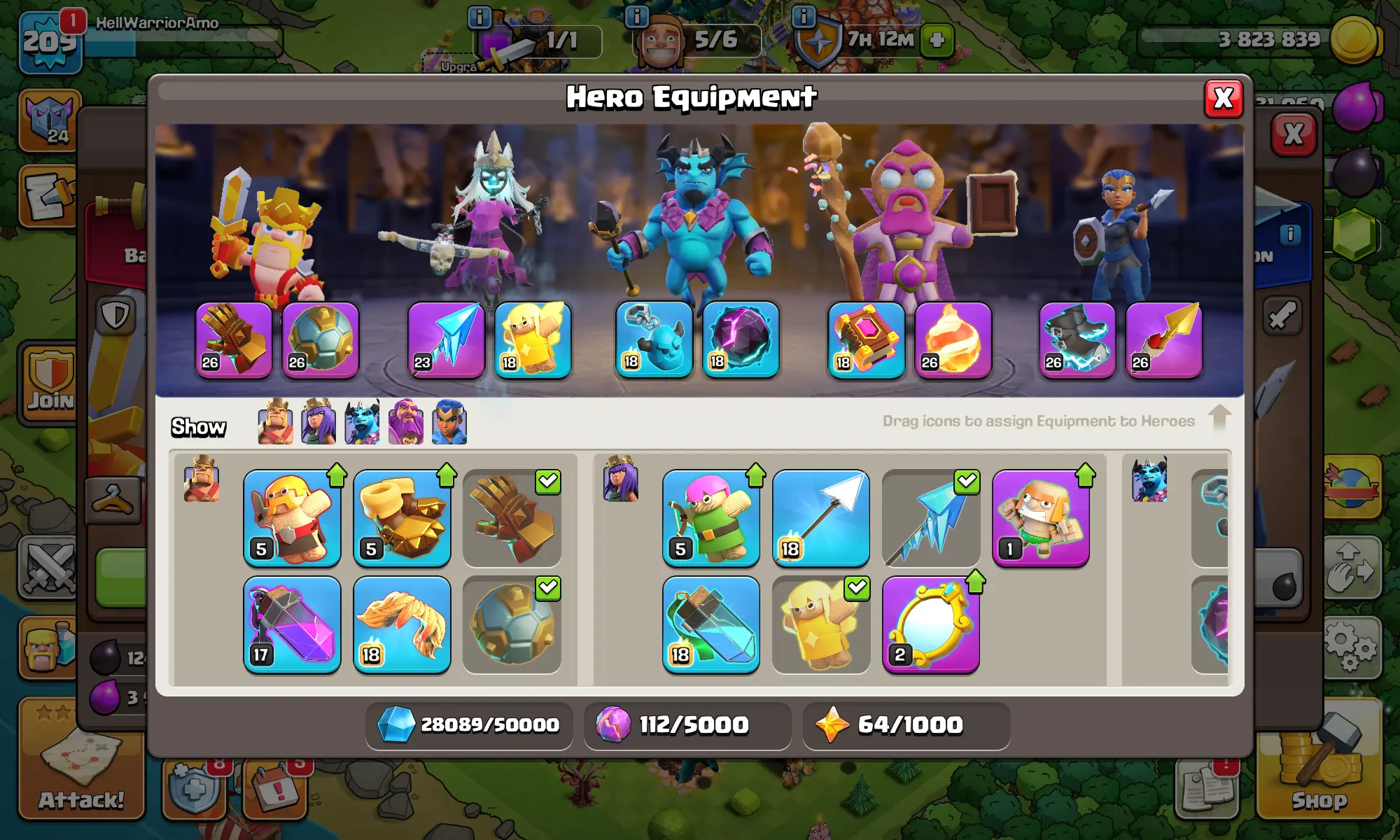 24000+ GEMS โข 200% STACKED TH16 ACCOUNT 99% MAX HEROES โก | ๐ฎ LVL 209 ๐ | โ๏ธ HEROES 88-95-65-70-45 ๐ก๏ธ | ๐ฏ BH10 + ๐ ๏ธ BM35 ๐BC35 โ๏ธ | ๐