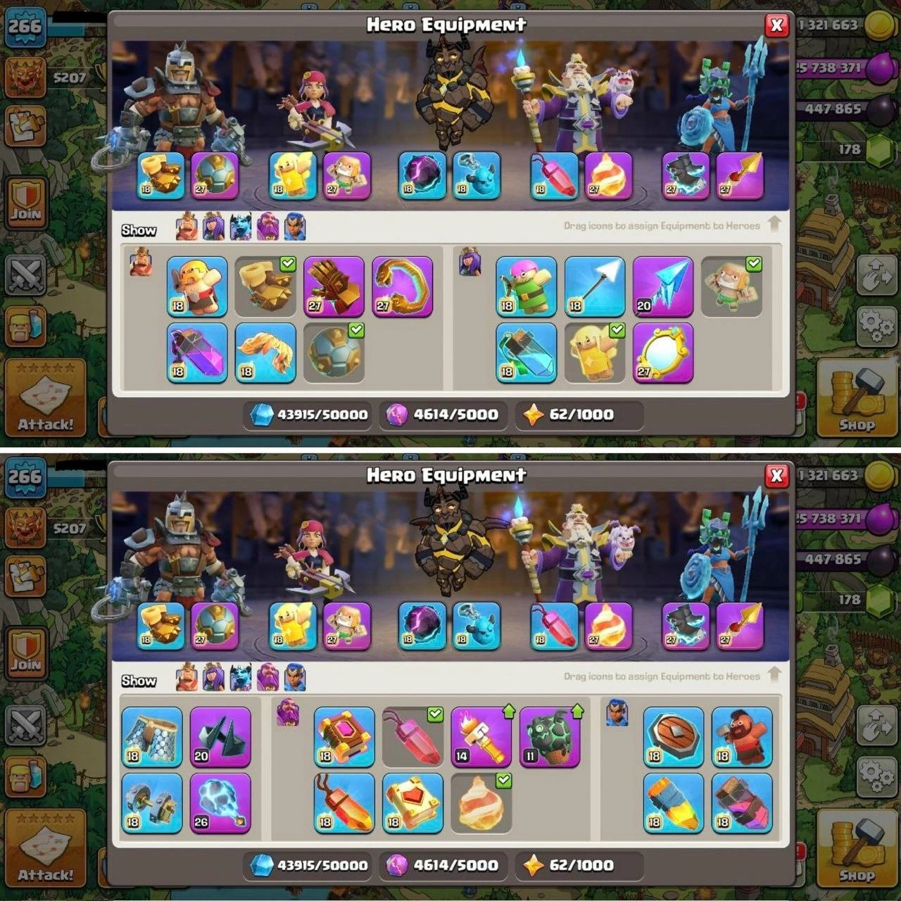 ♻️ 28 EQUIPMENT MAX ♻️ TH 18 MAX ALMOST ♻️ 8 EPIC MAX ♻️ 5 HERO MAX ♻️ DEFENCE MAX ♻️ PROFILE MAX ALMOST ♻️ STACKED ♻️ BH MAX NEAR ♻️ INSTANT ACCESS ♻️ S09