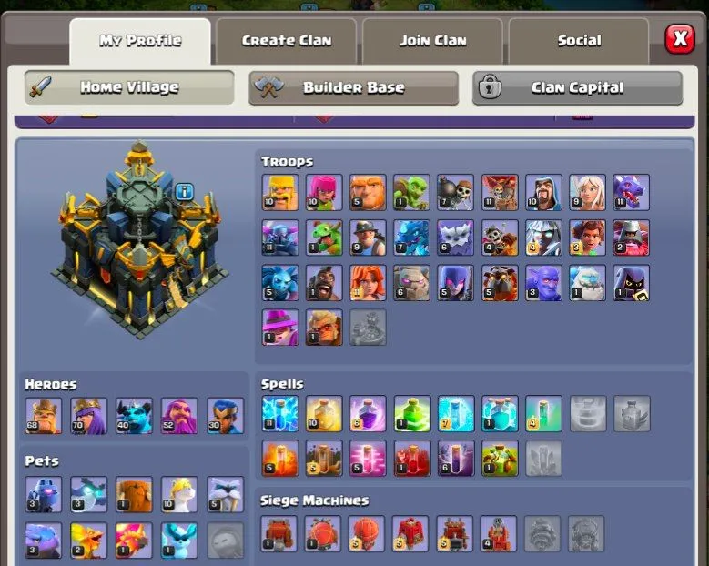 7 Max Equipments 💥 , 11 Epic equipments 🎉 , Th 17 Semi Max 🌼 , Heroes 68-70-40-52-30 🔥 , 692 CWL Medals 🥇🏆 , Magic items ⚡ , Nc ⸱ Free 💎 | Both Android and iOS | Instant Delivery 🚚