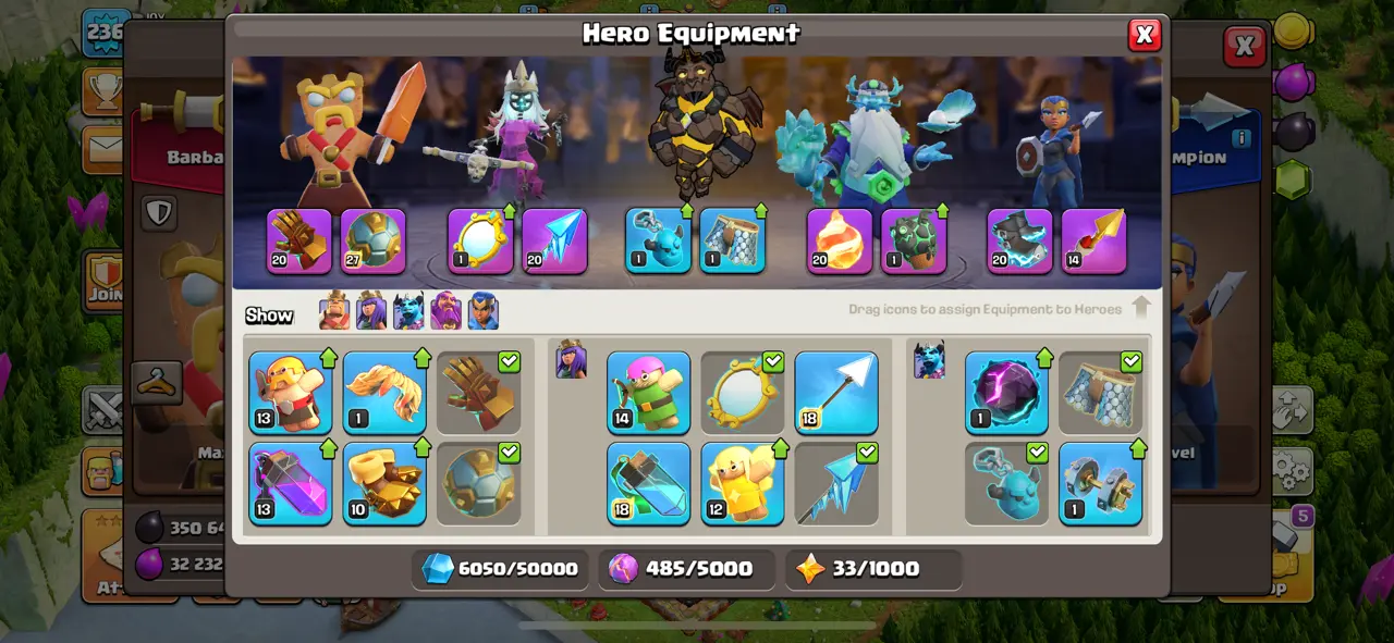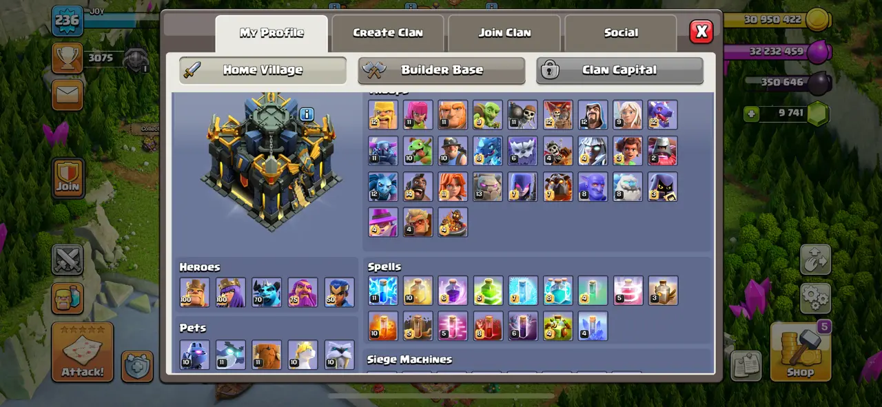 💎 9,741 GEMS 🔥 TH 17 ALMOST MAX 🔥 XP 236 [100-100-70-75-50] 🔥 8 EPIC EQUIPMENTS (1 MAX) 🔥 4 HEROES MAX 🔥 WALL ALMOST MAX 🔥 CHANGE NAME ON 🔥 FULL ACCES & GUARANTEED 🔥[F2499]