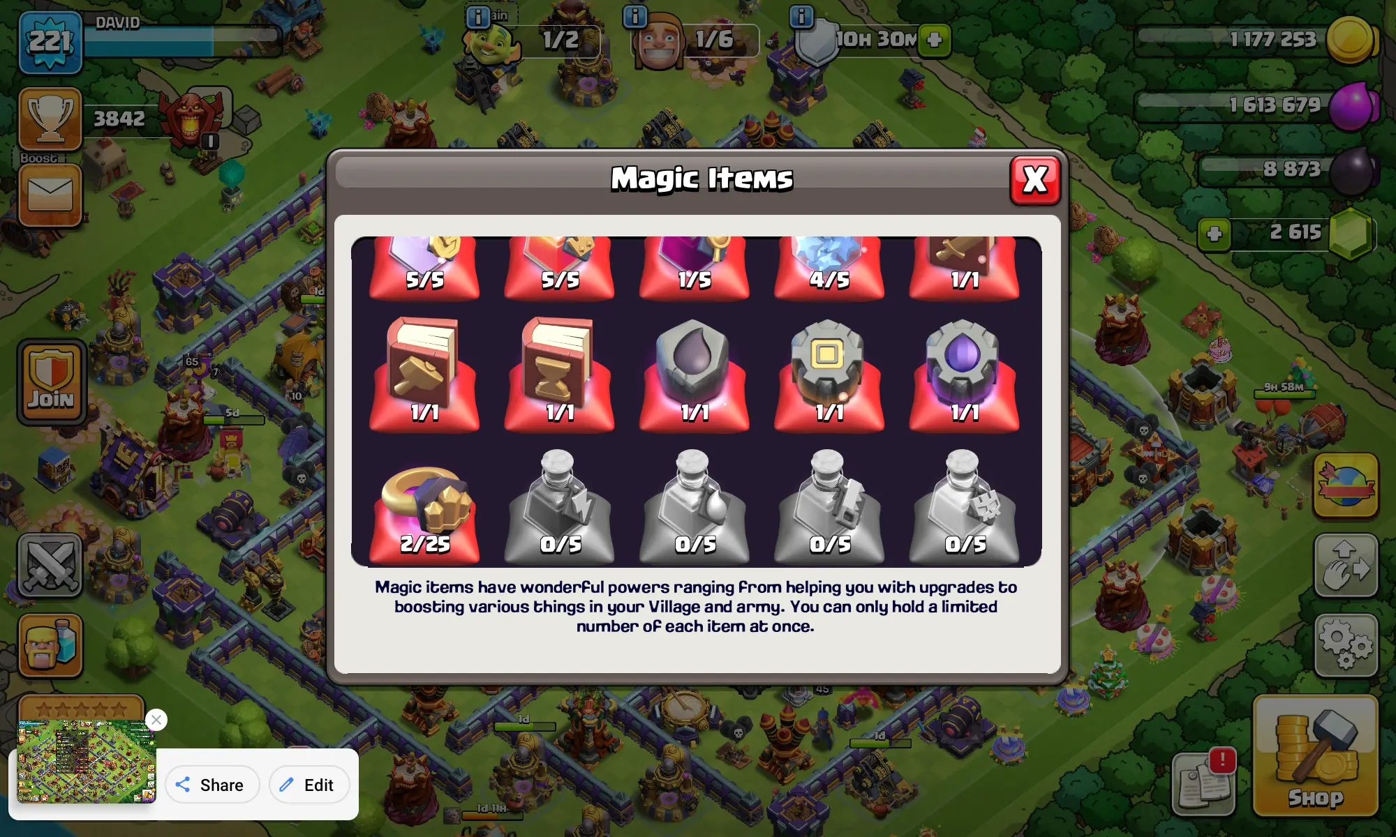 โก๐ฅ 99% MAX ๐ TH16 ๐ฐ ๐ฎ LVL 221 ๐ | โ๏ธ BK87 ๐น AQ90 ๐น MP67 ๐ GW65 ๐ก๏ธ RC45 | ๐ฐ BH10 โก BM35 | โญ1538 WAR STARS ๐ 5147 TROPHIES โจ 2900 RAID MEDALS ๐๏ธ 100 CWL MEDALS | ๐๏ธ MAGIC ITEMS ๐ EPIC EQUIPMENT ๐ NAME CHANGE ๐
