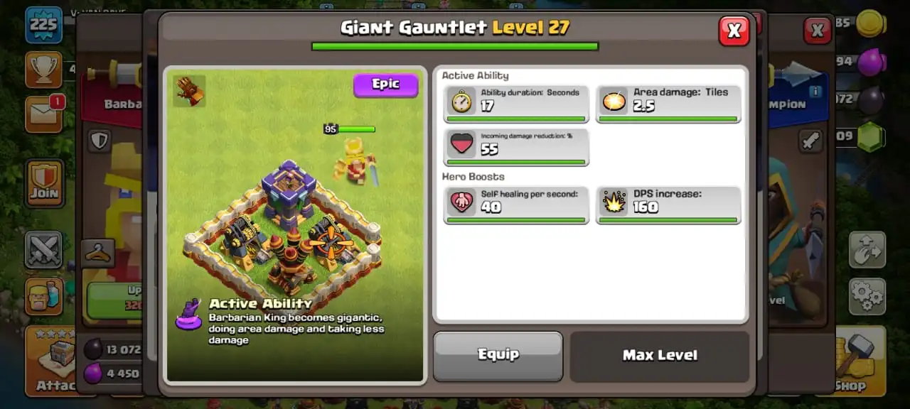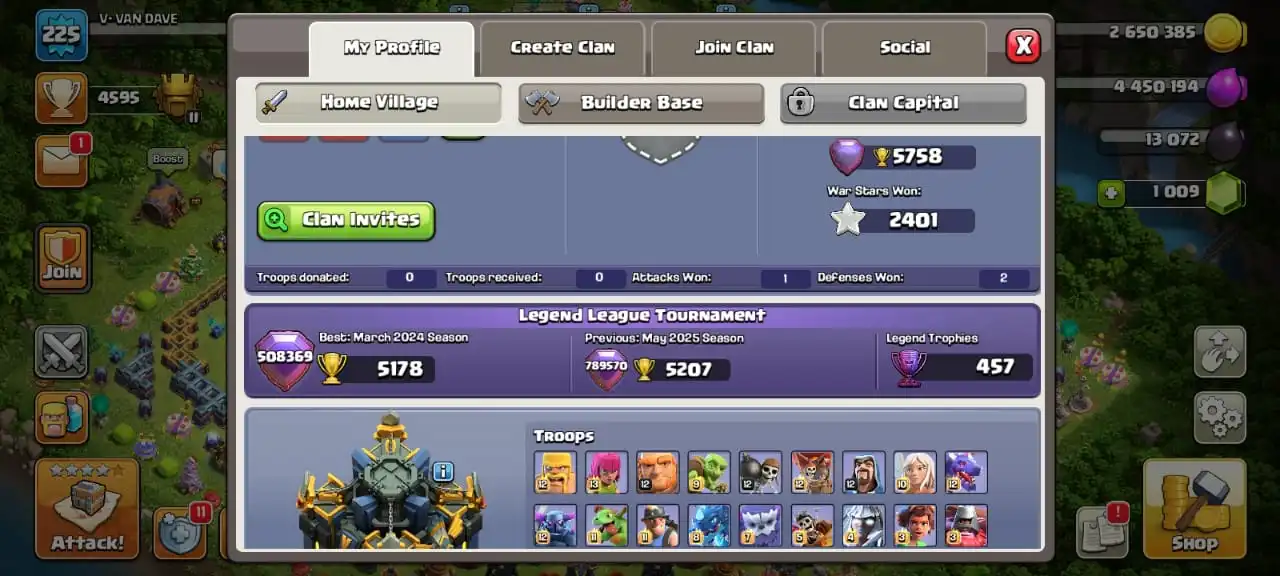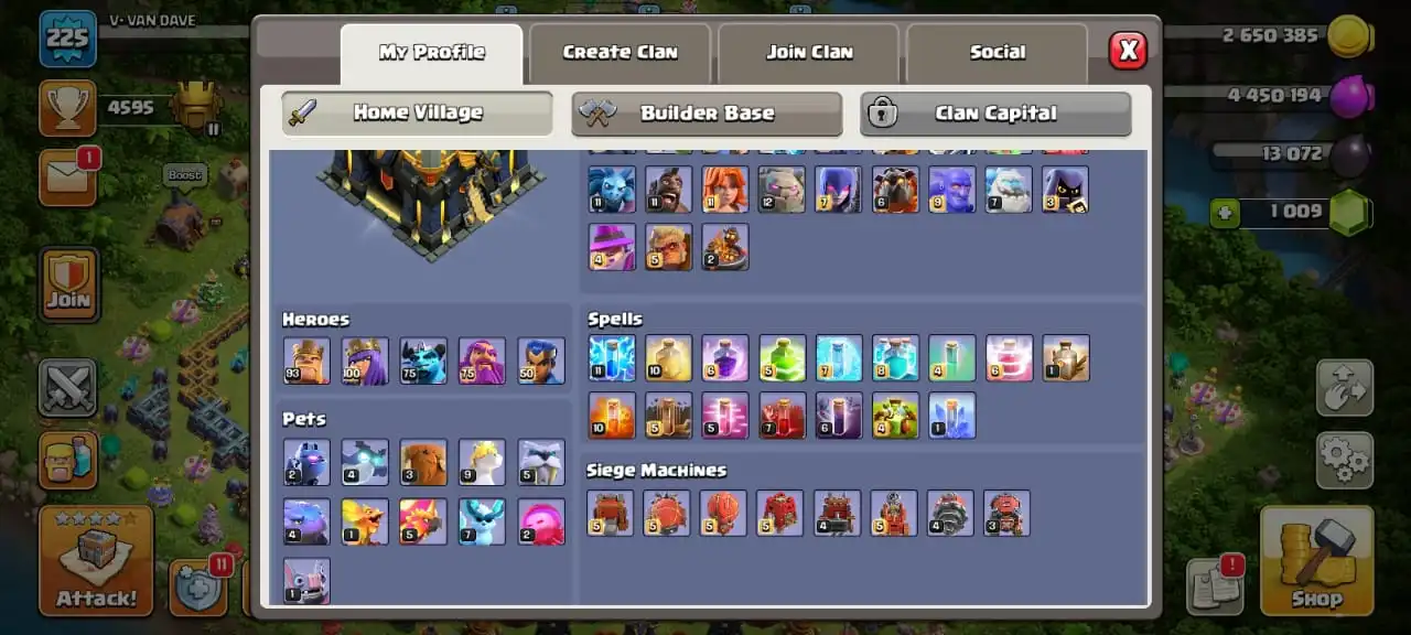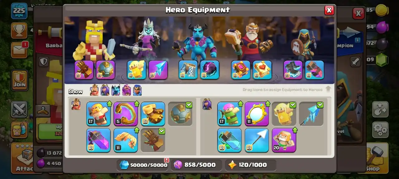 Big sale☠️4 max epic equipment🔥TH 17 almost max🔥high heroes level 93/100/75/75/50☠️full equipment⚒️6 builder’s⭐️786 cwl medal✅cn on